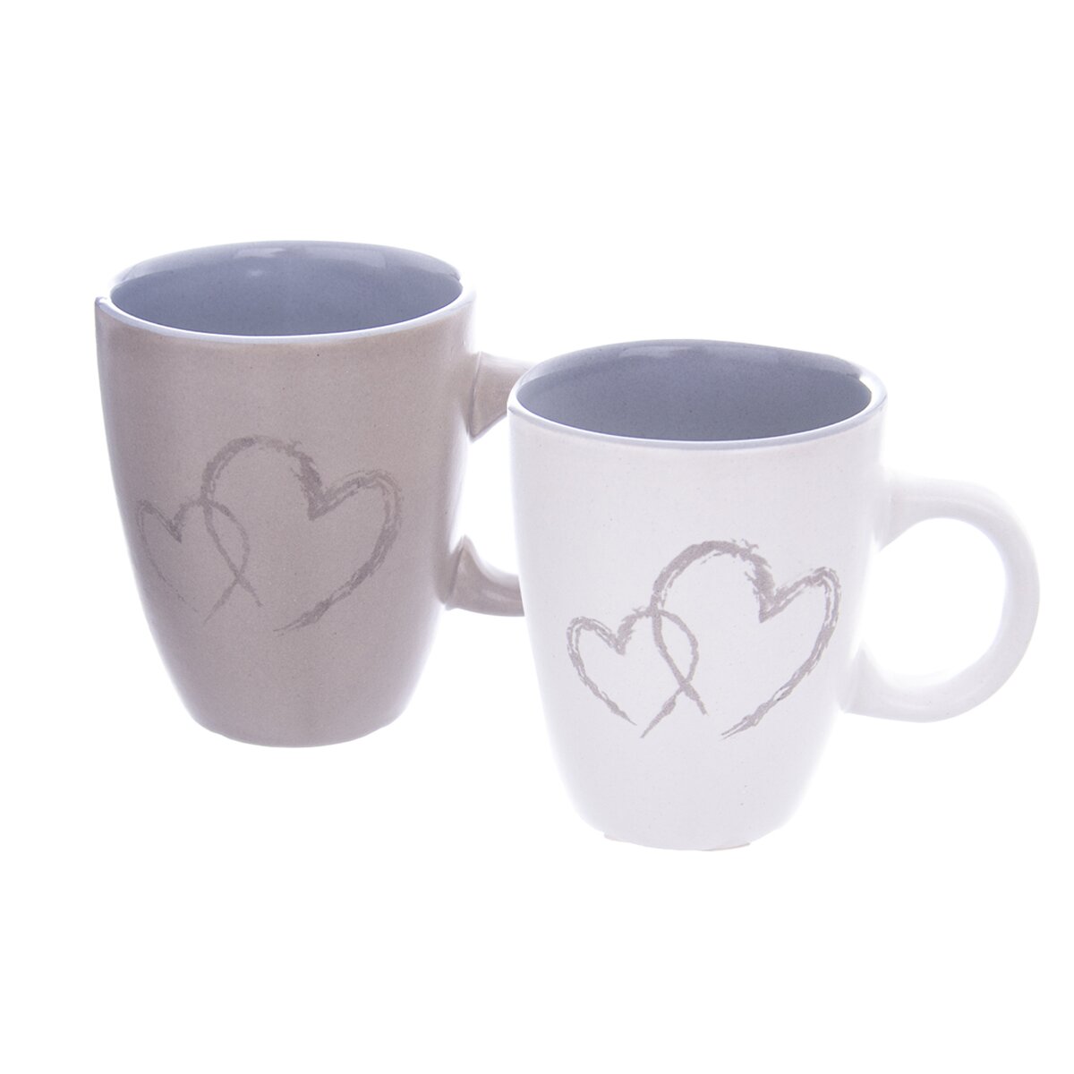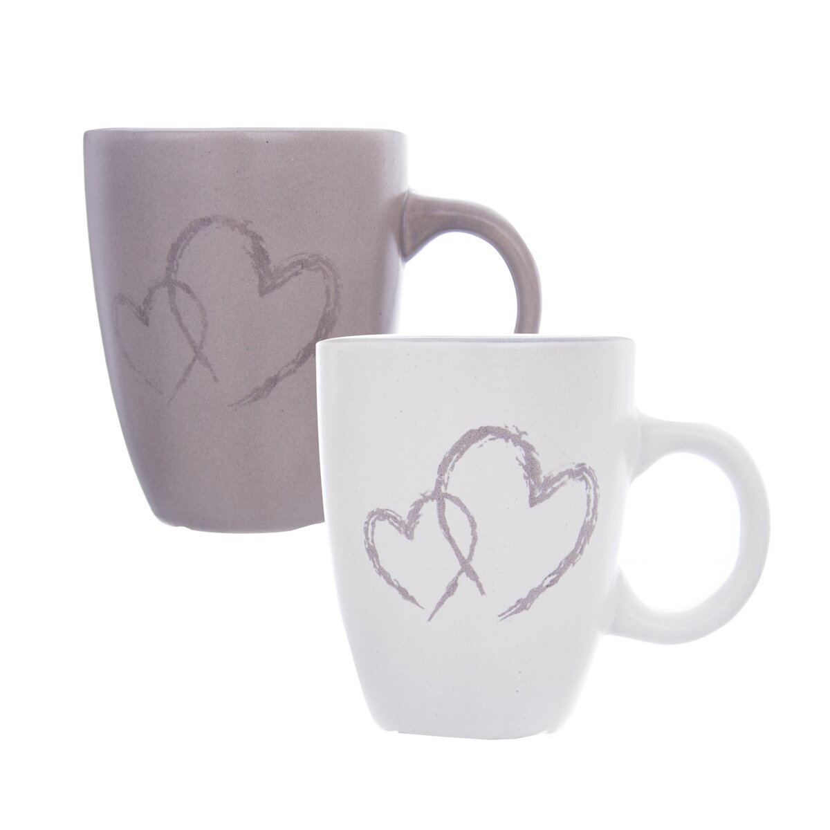 Ich dekor dvojitého srdca a neutrálne tóny farieb zaručia, že sa budú hodiť do každej kuchyne. Hrnčeky môžu do mikrovlnnej rúry aj umývačky riadu.