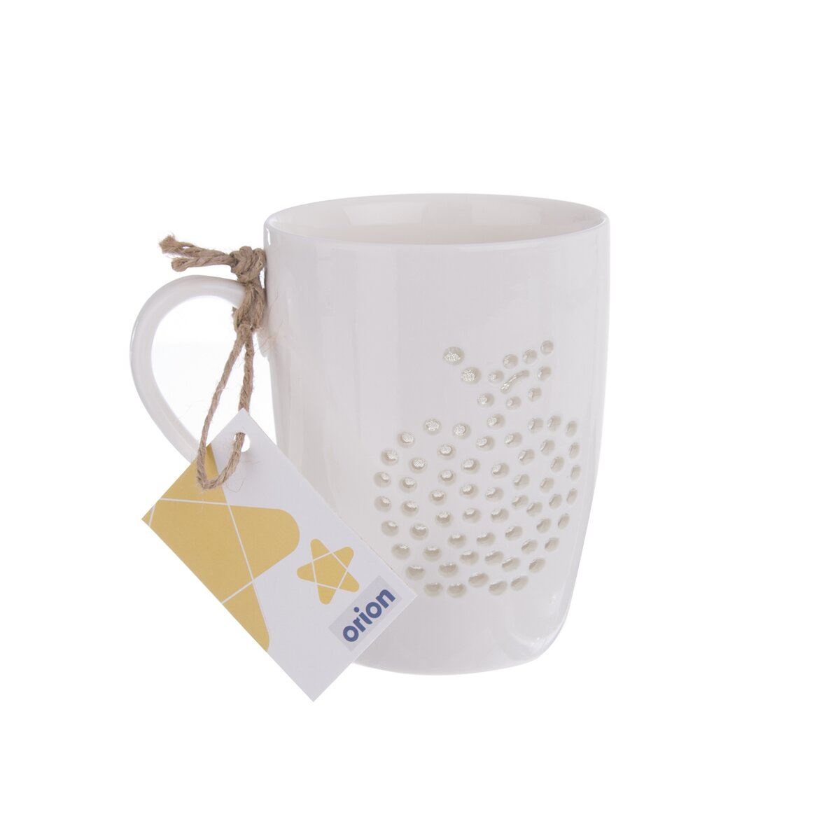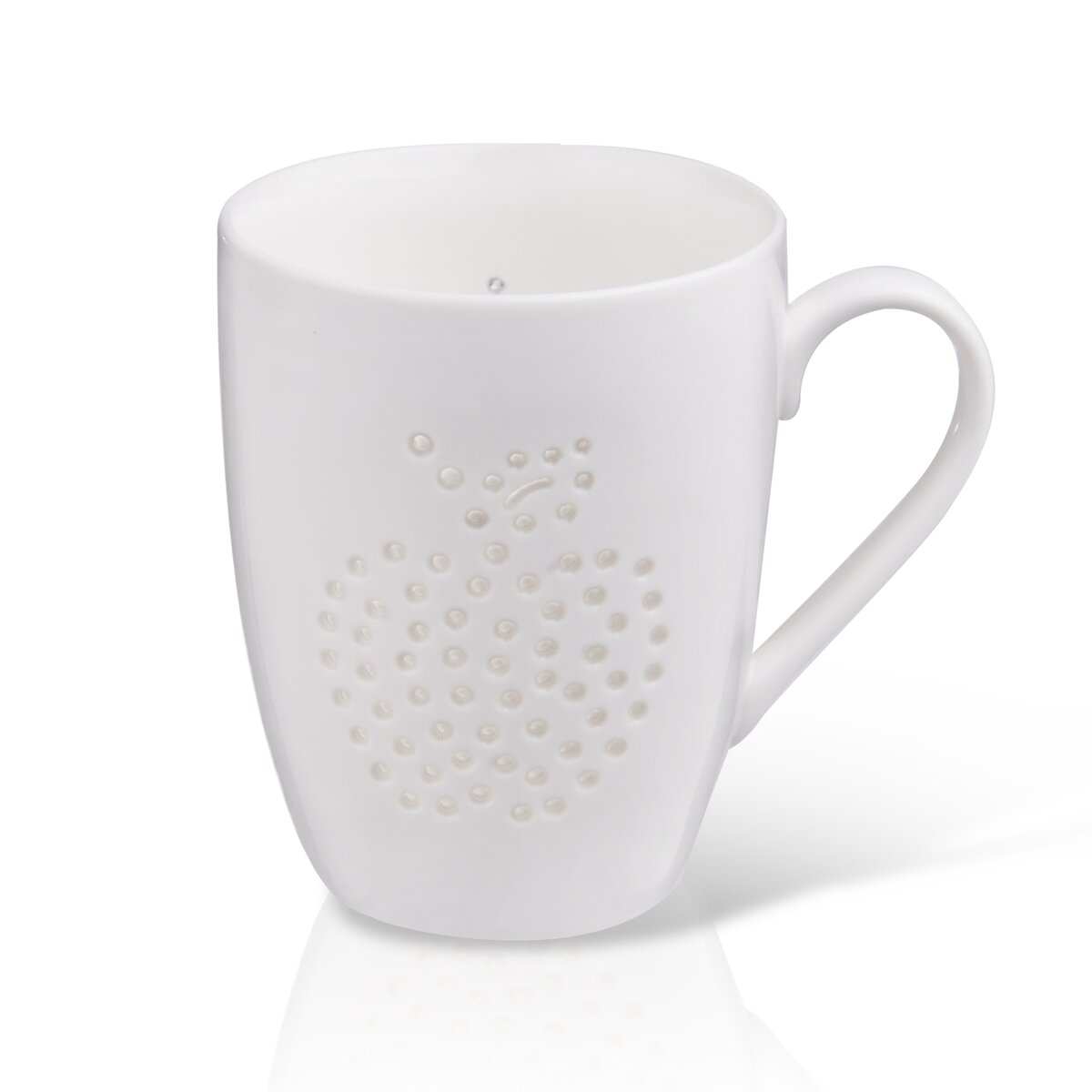 Hrnček so zaujímavým dekórom. Materiál: porcelán. Rozmery: objem 0,42 l, pr. 8,5 cm, v. 10,5 cm.