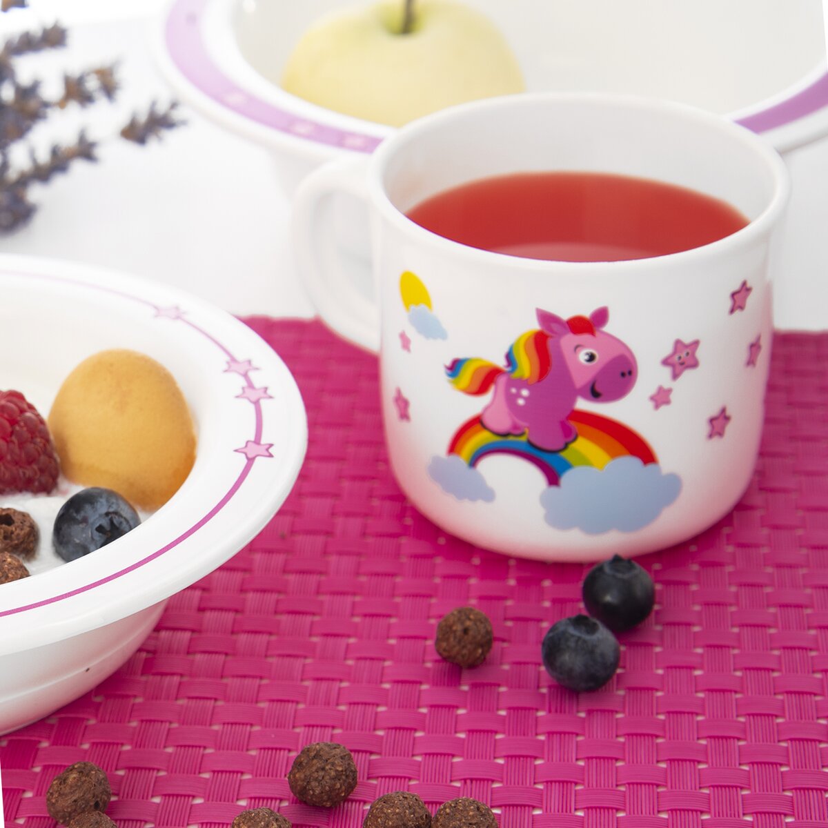 Hrnček s rozprávkovým koníkom, ktorý vykúzli úsmev na tvári každého dieťaťa. Má objem 250 ml, vaše malé ratolesti z neho tak môžu piť džús, čaj, mlieko aj kakao.