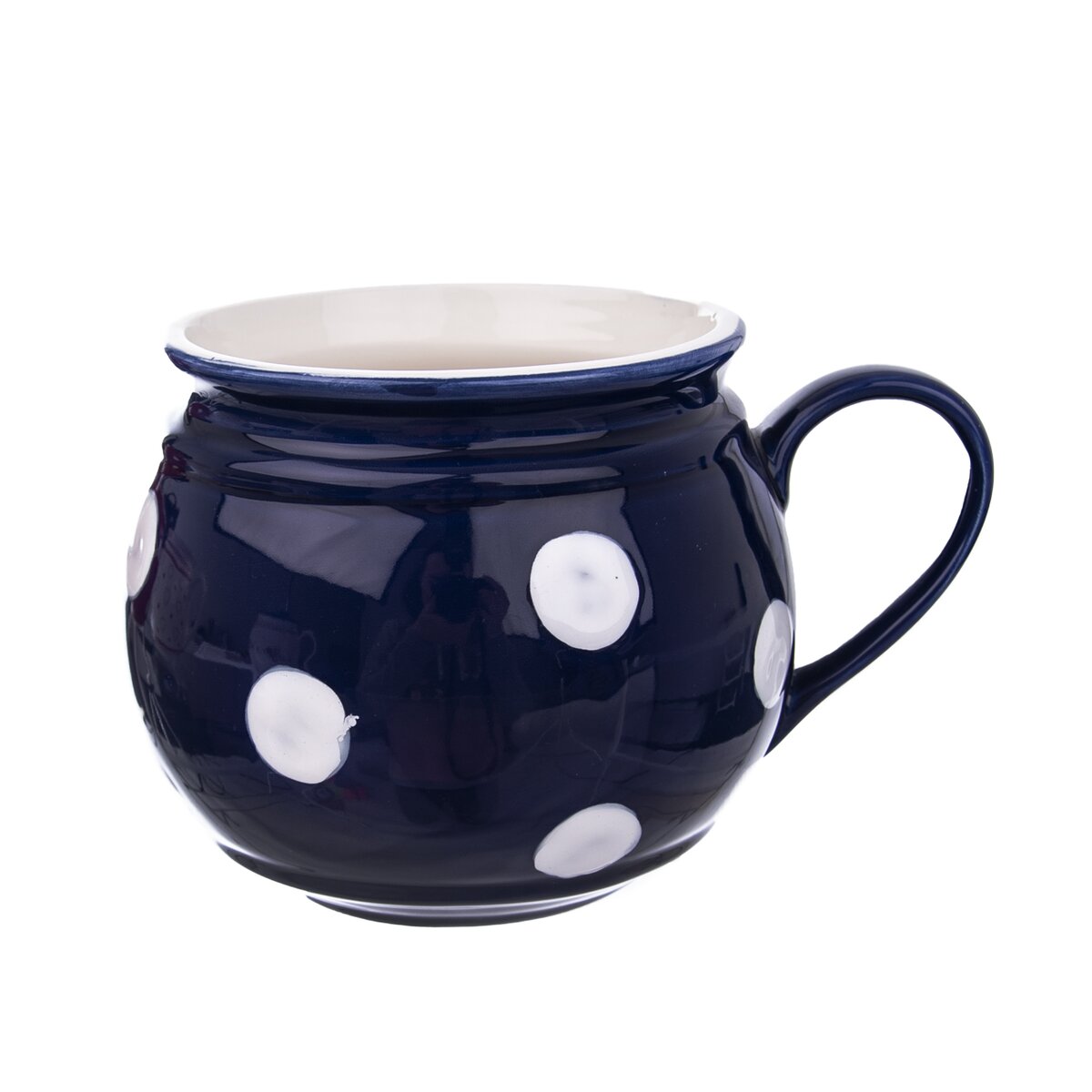 Kód produktu 125645Modrý keramický hrnček KRÁJAČ s objemom 0,75 l s bielymi bodkami.