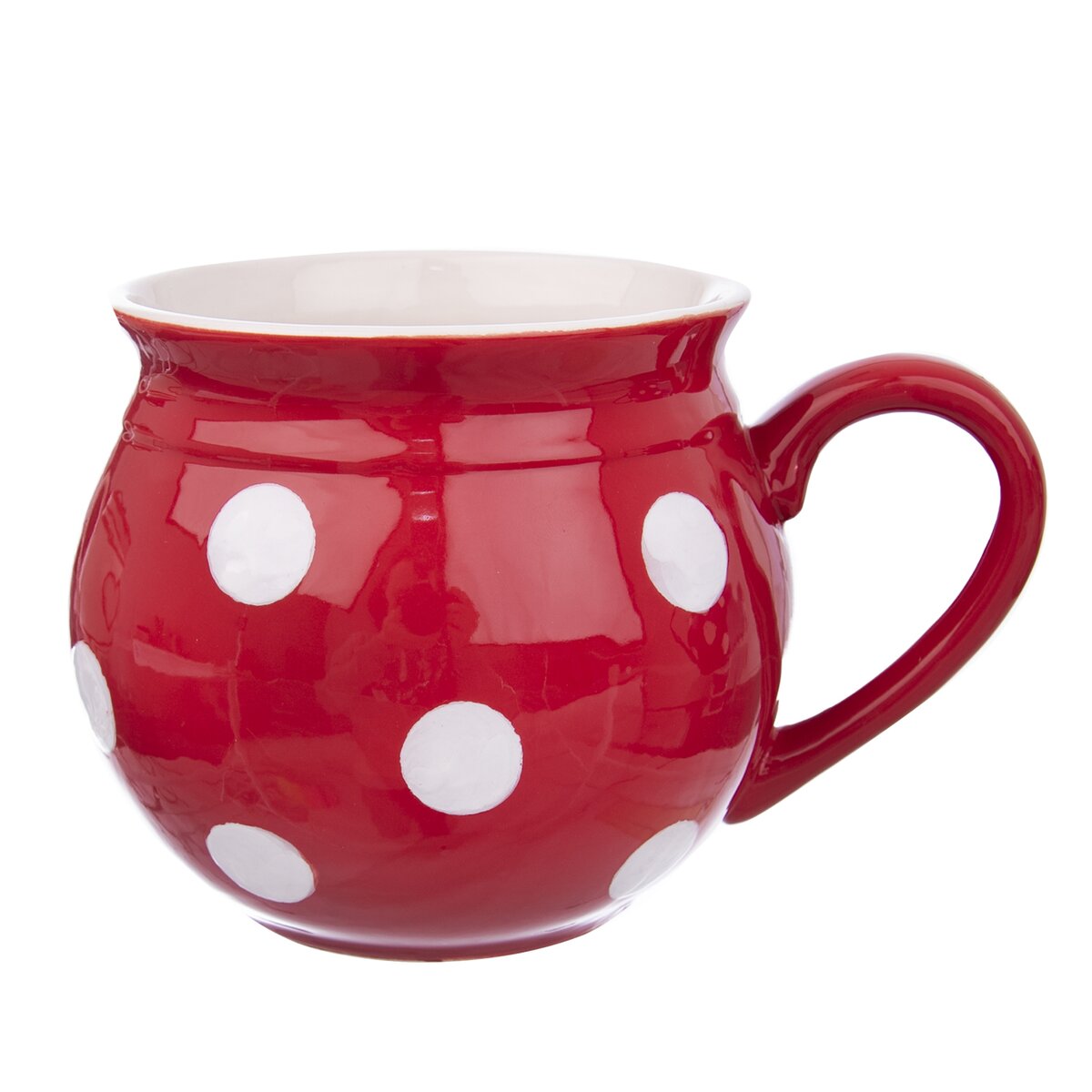 Kód produktu 125654Červený keramický hrnček KRAJÁČ s objemom 1 l s bielymi bodkami.