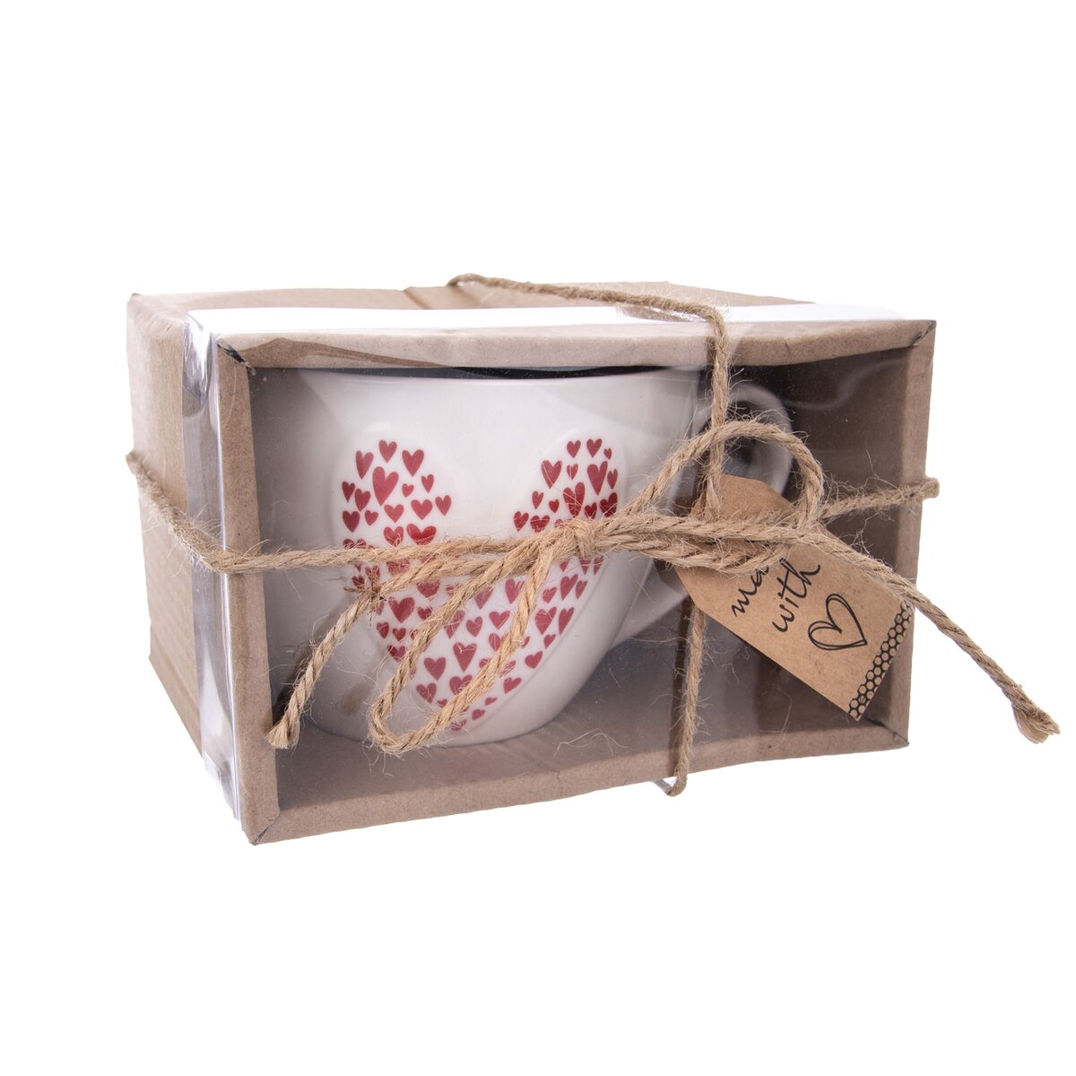 Vychutnajte si váš obľúbený druh kávy alebo čaju v tomto krásnom porcelánovom hrnčeku. Vyznačuje sa roztomilým dekórom červených srdiečok a objemom 490 ml.