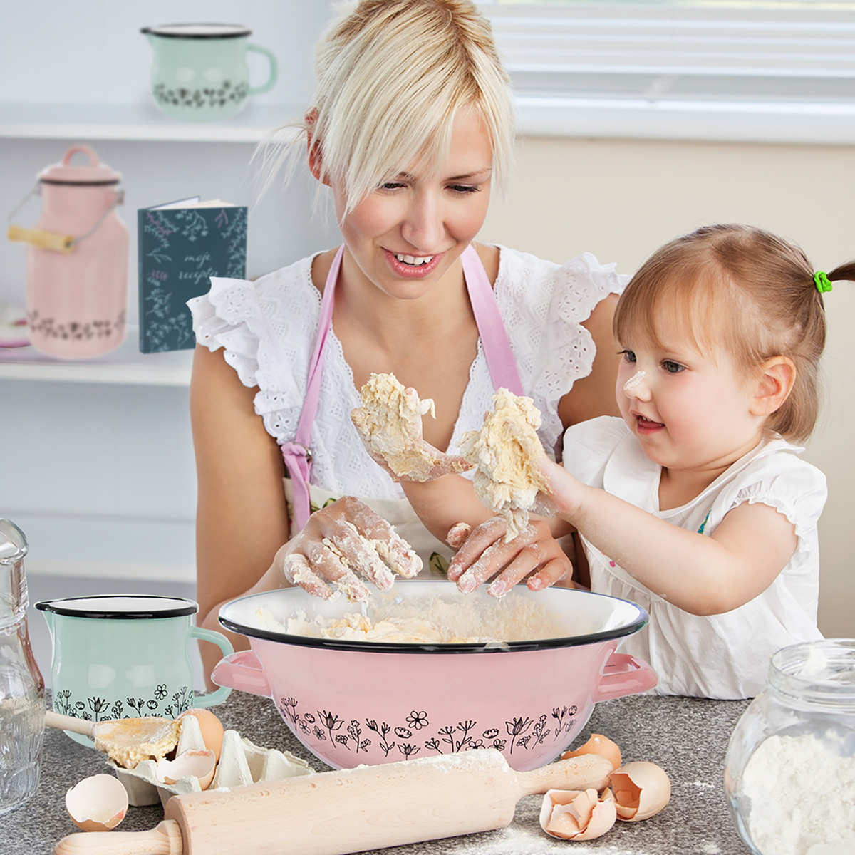 - Materiál ucha: smaltovaný plech