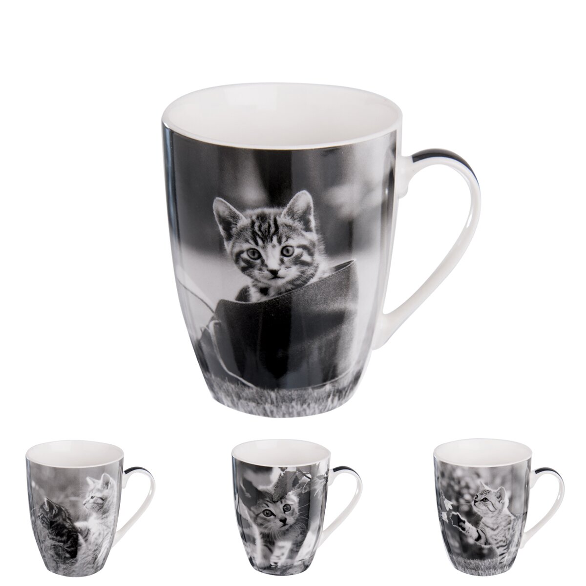 Ak zháňate darček pre milovníkov mačiek, skúste im darovať tento krásny porcelánový hrnček. Fotografie roztomilých mačiatok zaiste potešia každú spriaznenú dušu týchto štvornohých maznáčikov.