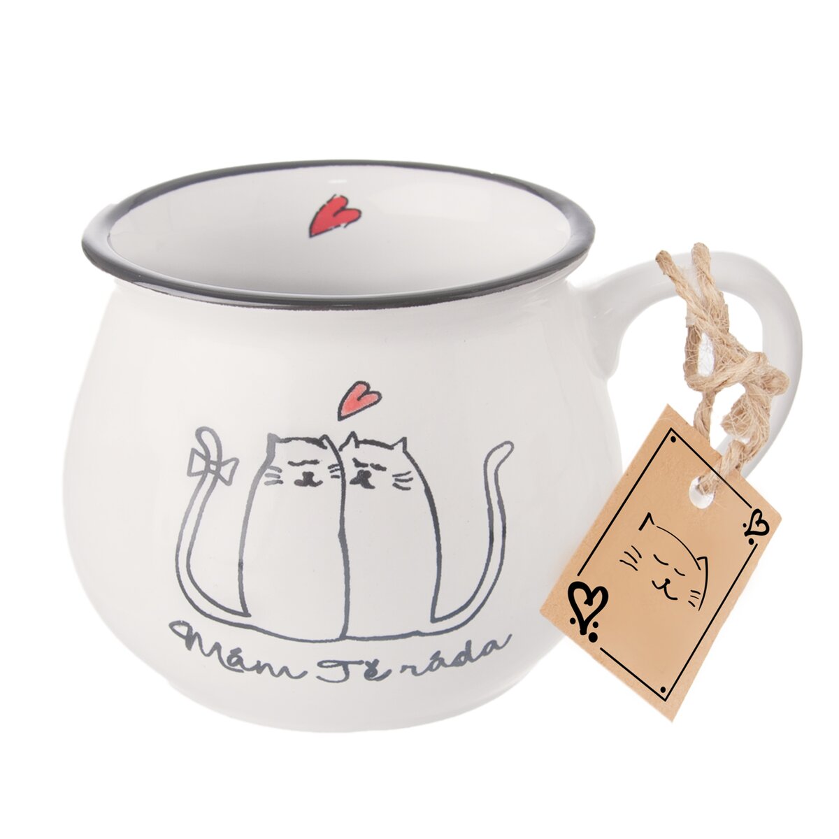 Kód produktu 128842Keramický hrnček s objemom 0,32 l s dekorom dvoch mačiek a nápisom MÁM TĚ RÁDA.
