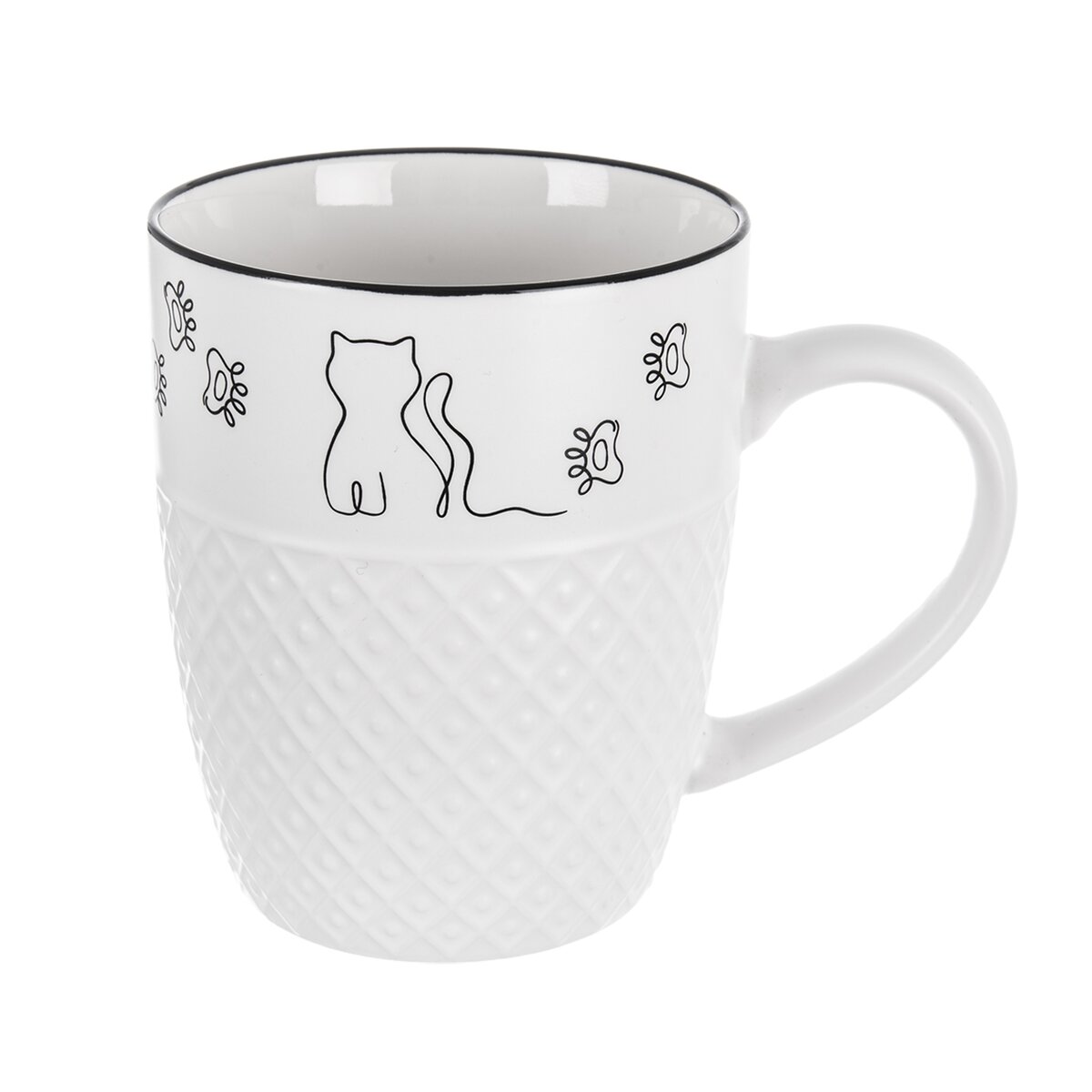 Elegantný hrnček s plastickým reliéfom a dekorom v hornej časti sa hodí na podávanie obľúbených nápojov. Či už je to horúci bylinkový čaj alebo veľká káva s mliekom, vždy vás dekor pohladí na duši a vy si vychutnáte svoju chvíľku pokoja.