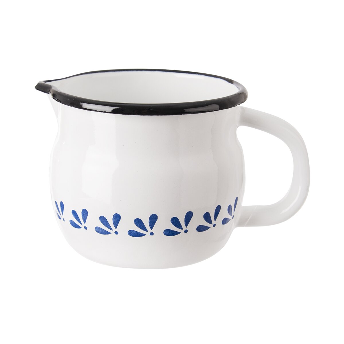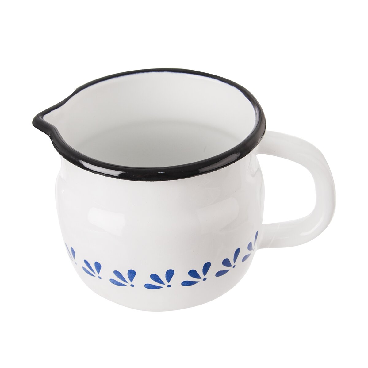 Kód produktu 113510Biely smaltovaný hrnček s objemom 0,8 l a dekorom MODROBIELA.