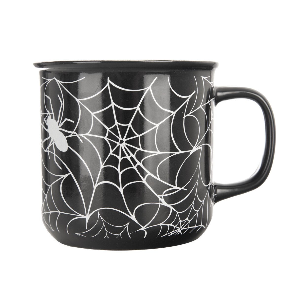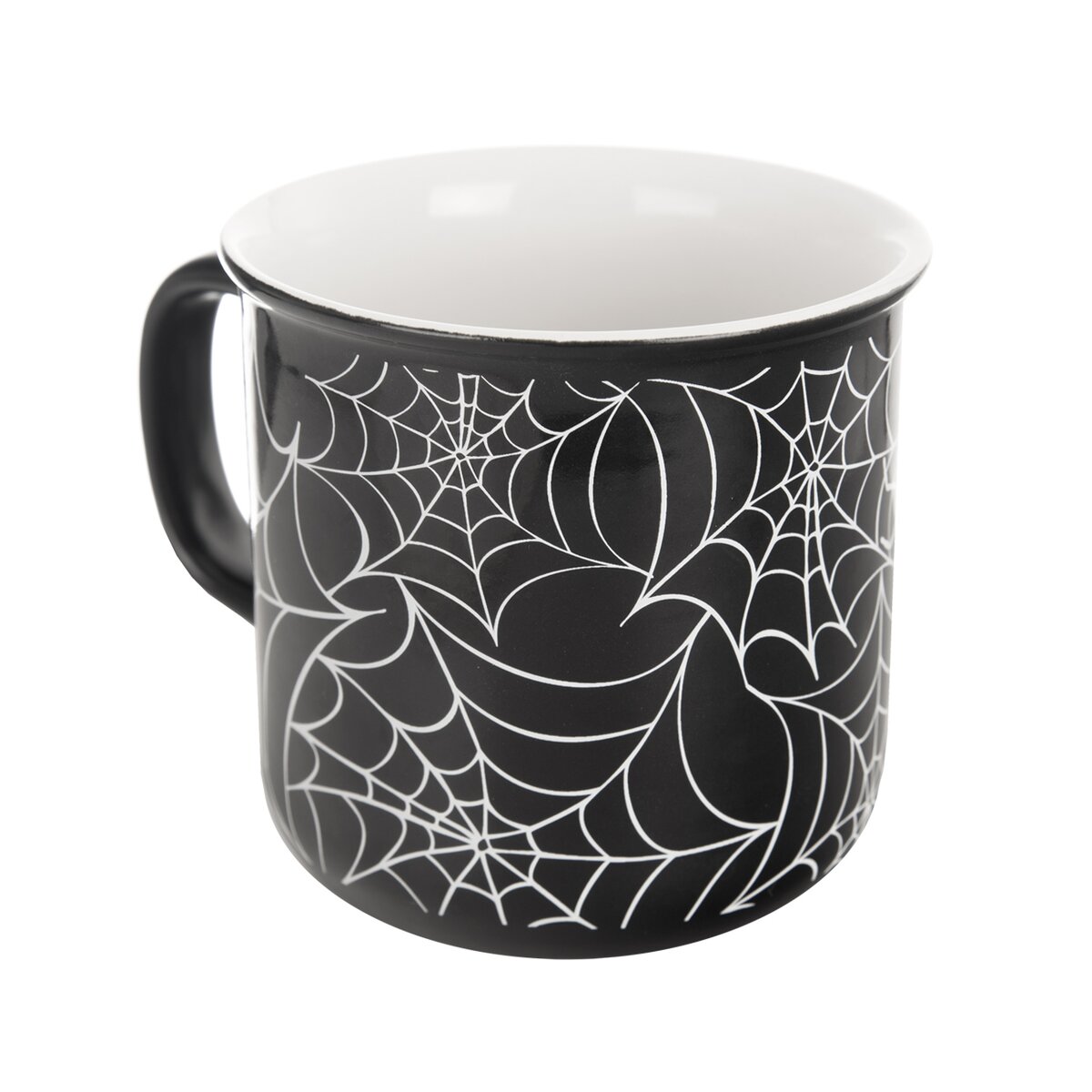 Kód produktu 129473Keramický hrnček s objemom 0,46 l, s tmavou glazúrou a motívom pavučín, je určený na podávanie čaju, kakaa a iných teplých či studených nápojov.