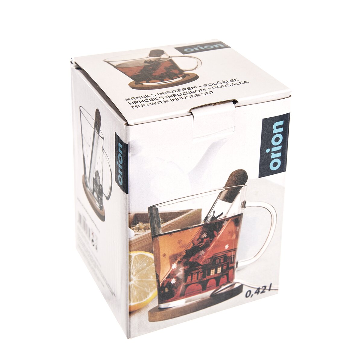 Viac informáciíSklenený hrnček s jemným dekorom dopĺňa kolekciu DOMČEKY. Súčasťou je bambusová podšálka a infuzér na lúhovanie čaju. Ide vlastne o inovované čajítko zo skla. To je opatrené drážkami, ktorými prestupuje výluh zo sypaného ovocného, čierneho, zeleného alebo bylinkového čaju do horúcej vody v hrnčeku.