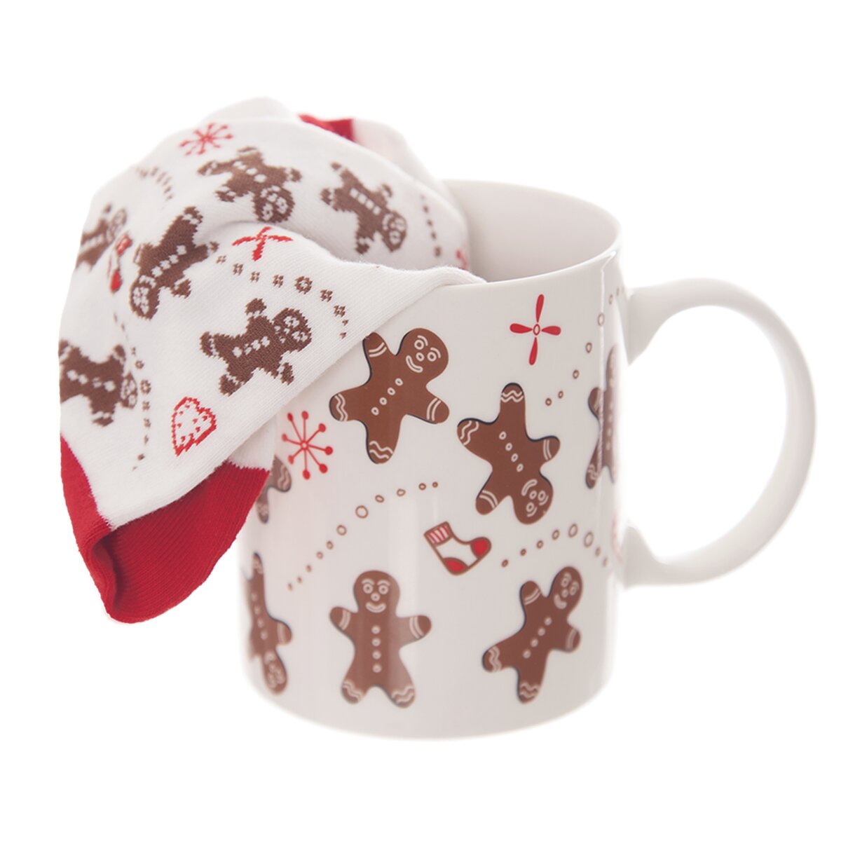 Kód produktu 129466Keramický hrnček s objemom 0,35 l v sade s veselými ponožkami veľkosti 38-40. Zdobí ich motív roztomilých perníčkov.