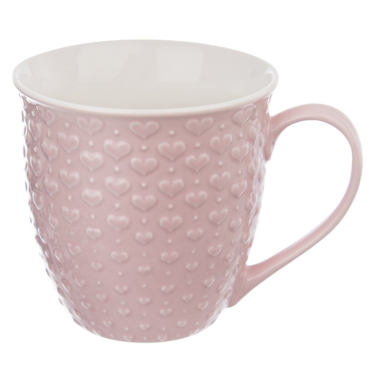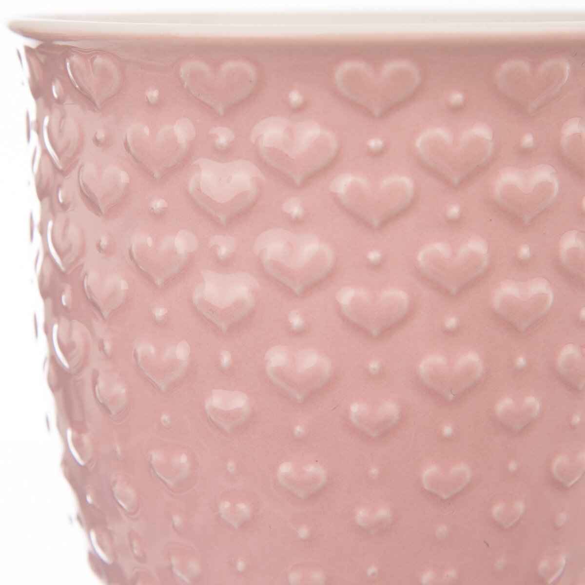 Kód produktu 128847Veľký ružový keramický hrnček objemom 0,58 l s krásnym plastickým reliéfom drobných sŕdc na povrchu.