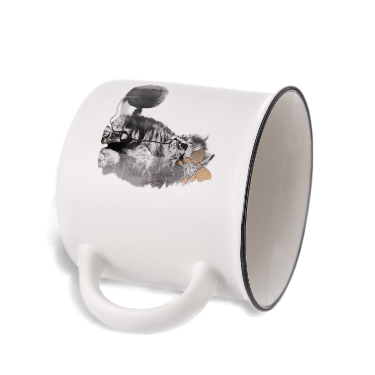 Porcelánový hrnček s objemom 0,42 l s čiernobielym dekorom zvierat so zlatými detailmi.