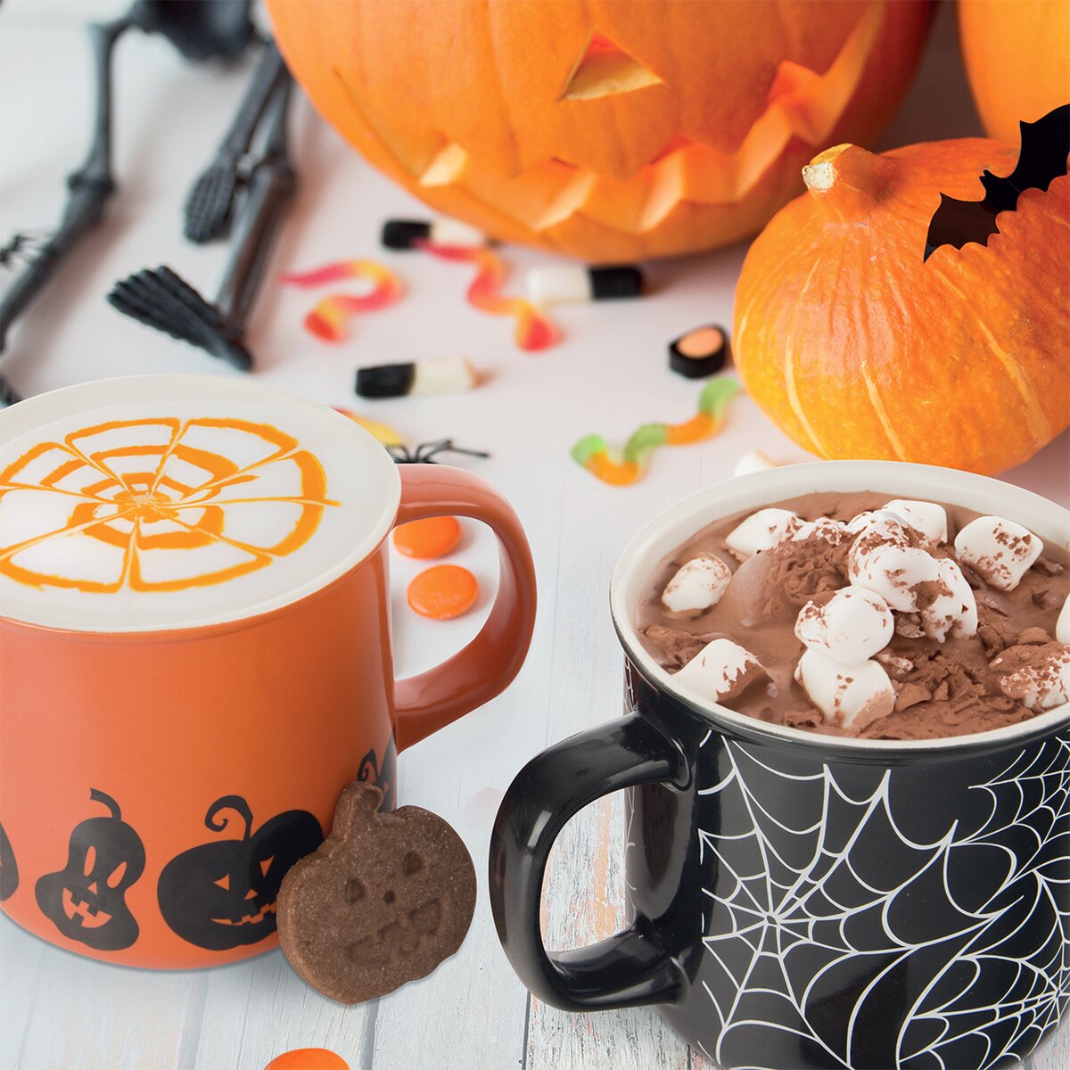 Kód produktu 129474Keramický hrnček s objemom 0,46 l, s oranžovou glazúrou a motívom halloweenskych tekvíc, je určený na podávanie čaju, kakaa a iných teplých či studených nápojov.