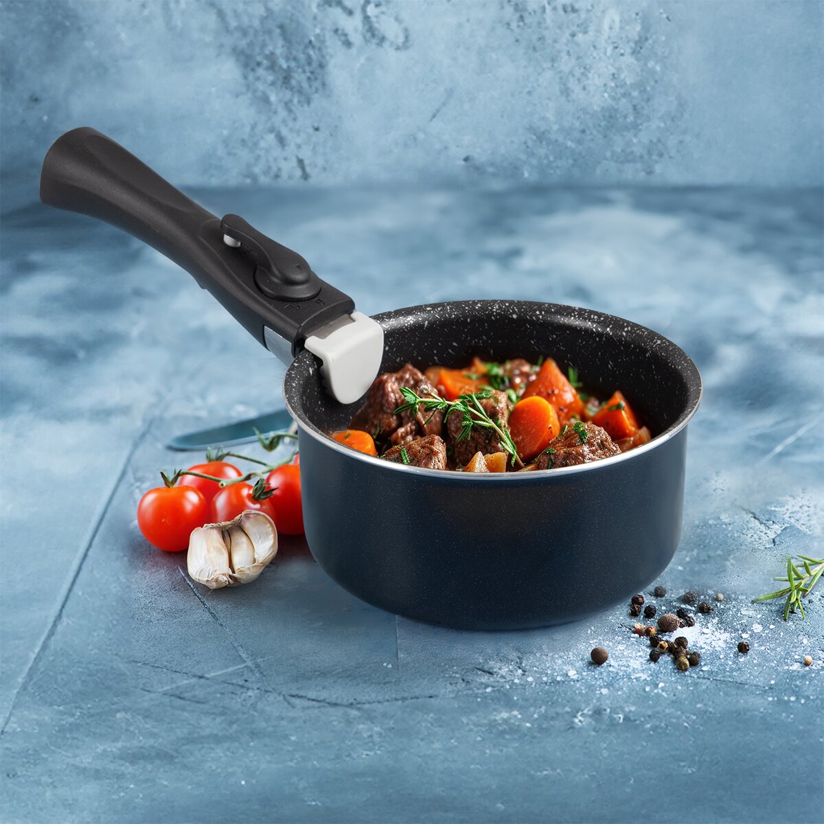 Kód produktu 113353Hrniec z kolekcie GRANDE COMBI s veľmi kvalitným nepriľnavým povrchom PFLUON GRANIT sa skvele uplatní v malých kuchyniach, pretože vďaka odnímateľnej rukoväti (je potrebné ju k hrncu dokúpiť z našej ponuky 181719) je veľmi skladný a ušetrí miesto vo vašej kuchyni. Využijú ho skúsení kuchári, ale predovšetkým sa môže hodiť do kuchyne mladých párov, na internát študentov, do kamiónov, do kempu, do karavanu, pri stanovaní... Môžete v ňom variť, smažiť, dusiť, opekať a zapekať s minimálnou potrebou tuku. Pripravovaný pokrm sa nepripeká. Vhodný je na všetky typy spotrebičov vrátane indukcie aj do rúry. Materiál: hliník s vynikajúcim nepriľnavým povrchom PFLUON GRANIT a s profilovaným dnom. Rozmery: vnútorné pr. 16 cm, celkový pr. 17,5 cm, v. 8 cm, o. 1,55 l. Pri plynových sporákoch voľte správnu veľkosť plameňa, pri elektrických, sklokeramických a indukčných varičoch je nutné zvoliť zodpovedajúcu veľkosť platničky. Pripravovaný pokrm je možné na sporáku pripraviť a potom ho pomocou odnímateľnej rukoväte vložiť do rúry a rukoväť odopnúť. Pripravené jedlo môžete pohodlne skladovať v hrnci aj v chladničke. Je praktické k nemu zaobstarať sklenenú pokrievku 126333 a plastové viečko 151392. Možno umývať v umývačke riadu. V tejto kolekcii ponúkame niekoľko veľkostí hrncov a panvíc, môžete si tak zaobstarať celú sadu nádob a využiť k nim všetkým jednu odnímateľnú rukoväť. Jednotlivé nádoby uložíte do seba a zaberú tak v skrinke len minimum miesta.