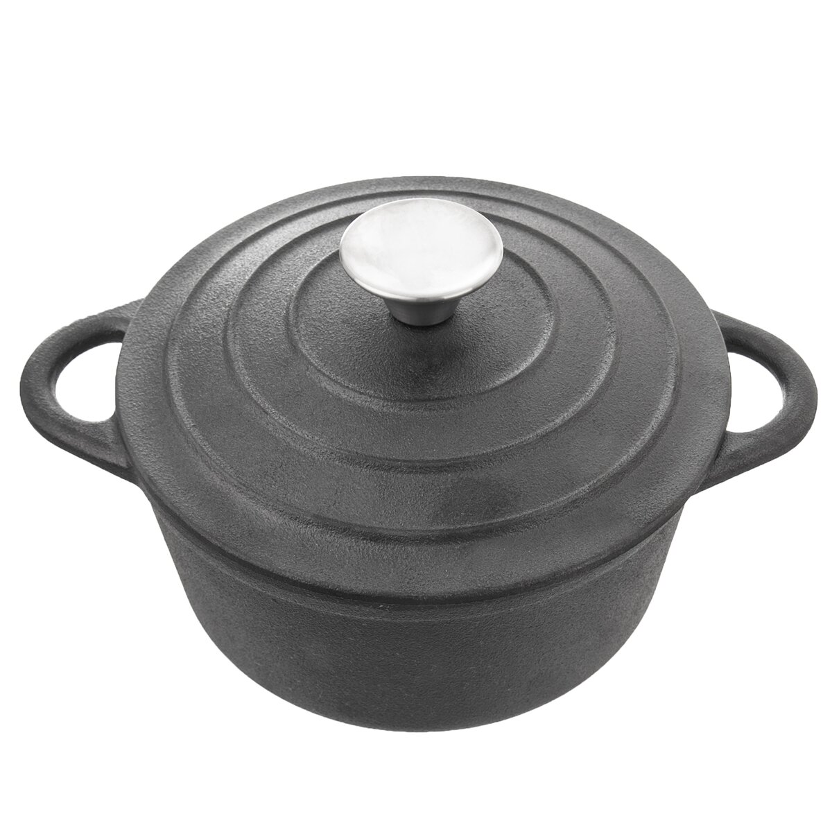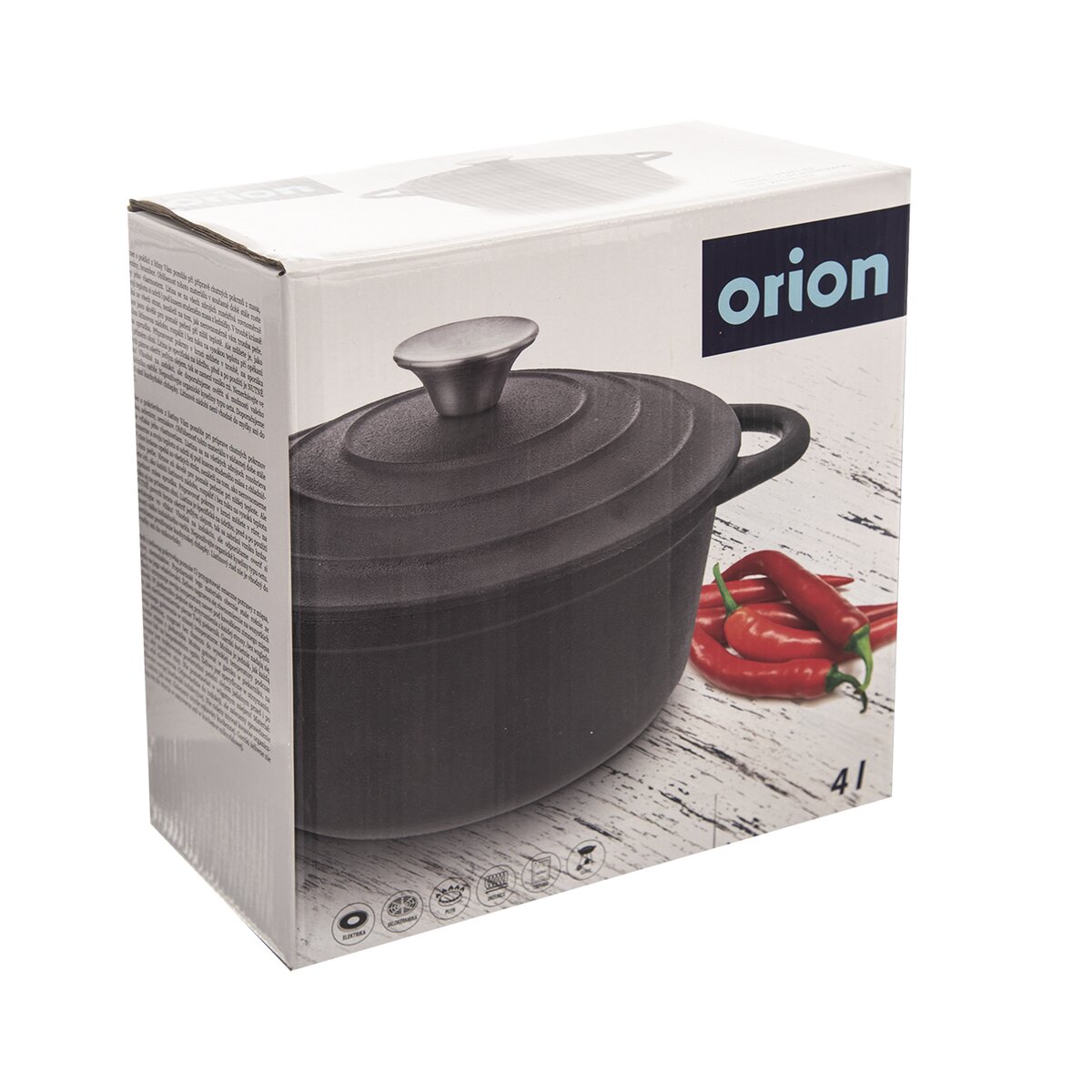 Kód produktu 113302Masívny liatinový hrniec s objemom 4 l, s pokrievkou s nerezovým úchytom a dvoma držadlami, je vhodný na prípravu, varenie a pečenie pokrmov na všetkých typoch sporákov, v rúre aj na priamom ohni.