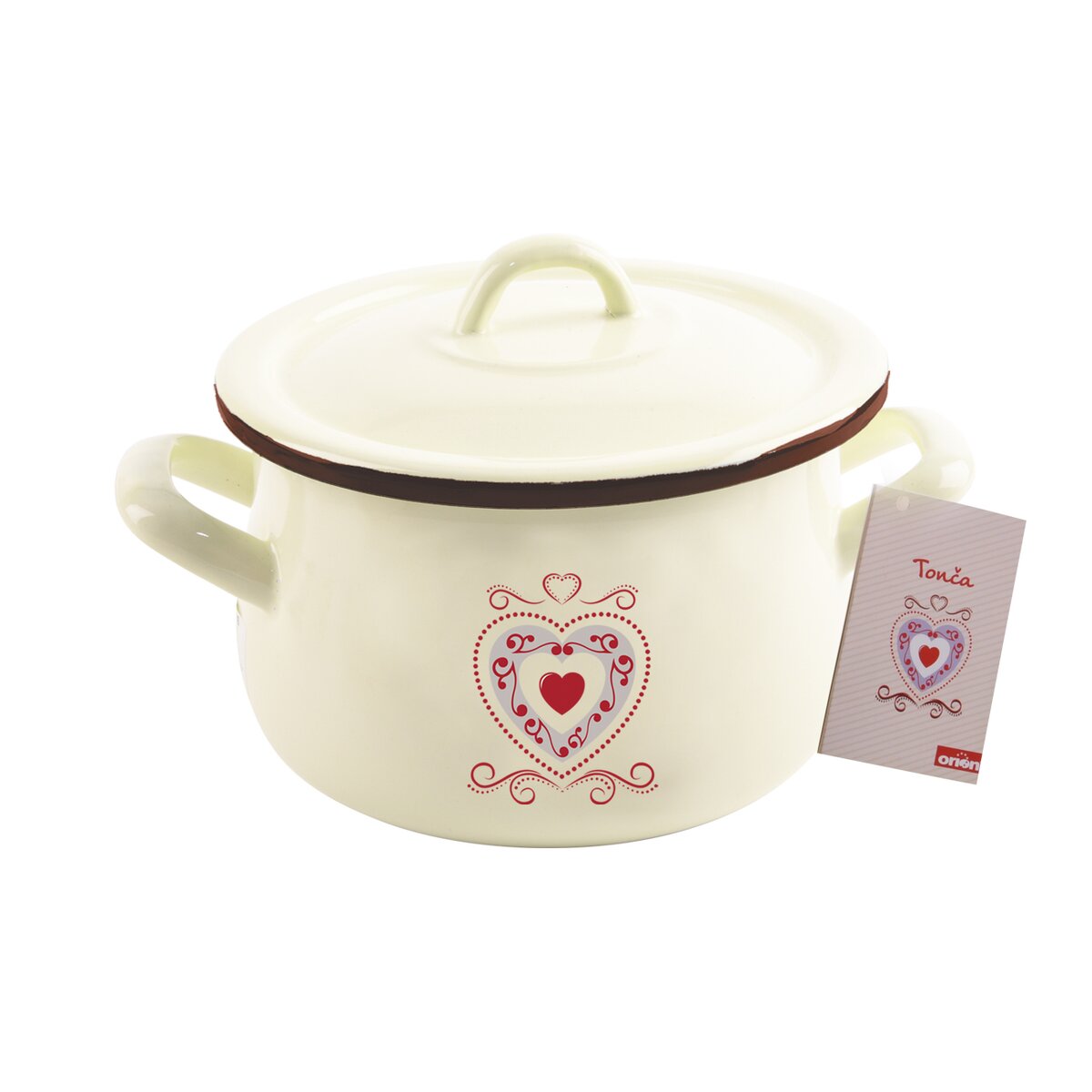 Kód produktu 113088Krásny krémový smaltovaný hrniec s ľudovým dekorom o objeme 4,8 l s pokrievkou na varenie, dusenie aj pečenie vašich obľúbených jedál, je vhodný na všetky typy sporákov aj do rúry.