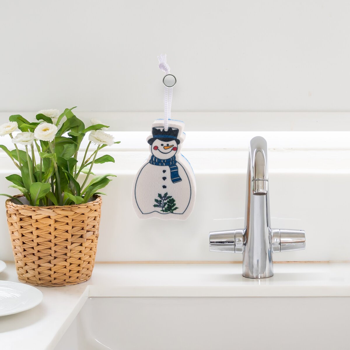 Kód produktu 710540Hubka na riad v tvare snehuliaka je určená na dôkladné umývanie riadu a rôznych plôch v domácnosti, je možné ju zavesiť blízko drezu alebo umývadla.
