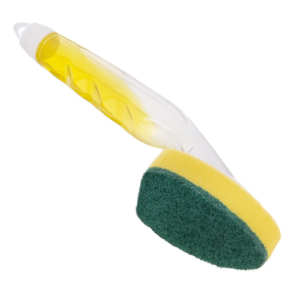 Zásobník naplníte vašim obľúbeným saponátom a v priebehu umývania si jeho množstvo dávkujeme stlačením huby k povrchu riadu. Hubka je vyrobená z polyuretánovej peny, na ktorej spodu je neškrábavý vlies. Hodí sa nielen na umývanie riadu, ale aj čistenie lesklých povrchov, teflónu či sklokeramickej dosky. Špongiu možno po opotrebovaní nahradiť (číslo produktu 711433).