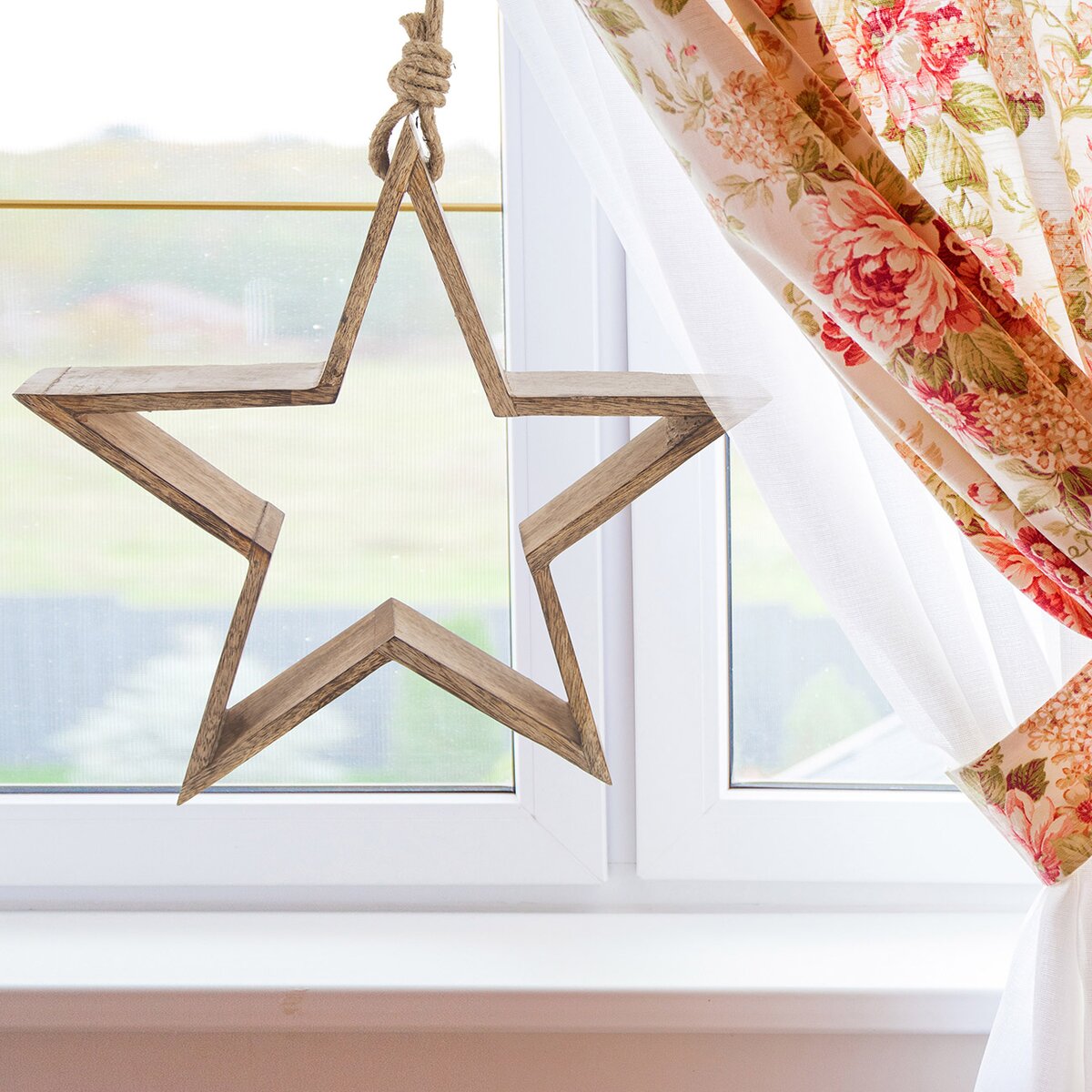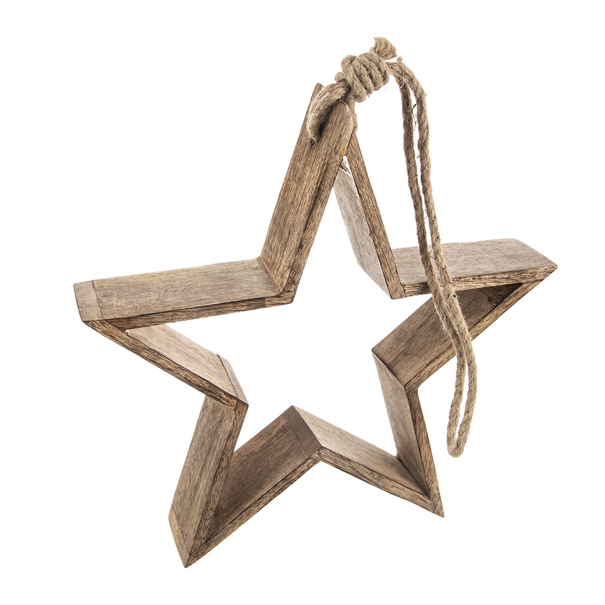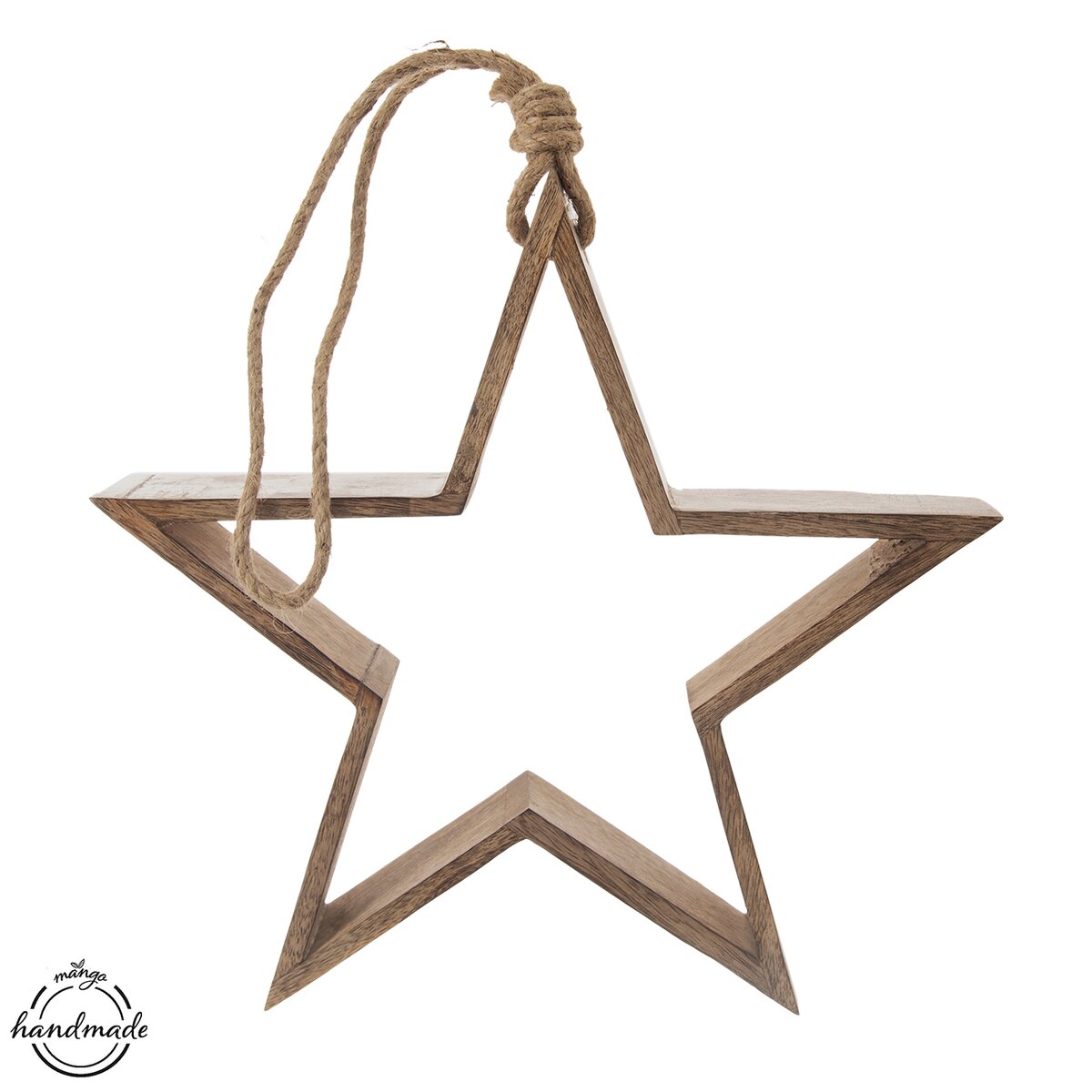 Mangové drevo má typickú, výraznú kresbu a krásnu farbu, hviezdu je možné zavesiť za jutový povrázok na stenu, okno či dvere, s povrazom má výšku 65 cm. Vďaka hĺbke 5,3 cm môže ale aj stáť na parapete alebo polici.