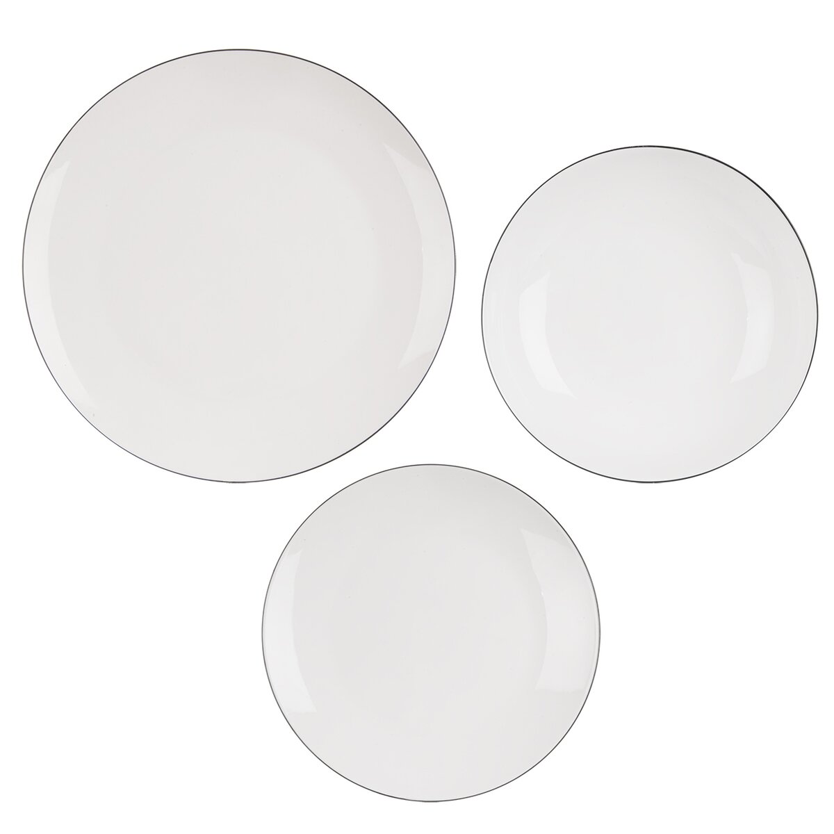 Kód produktu 129599Jedálenská sada DECORA z bieleho porcelánu zdobeného tenkou čiernou linkou po obvode obsahuje 6 dezertných, 6 hlbokých a 6 plytkých tanierov. Hodí sa na každodenné aj sviatočné stolovanie.
