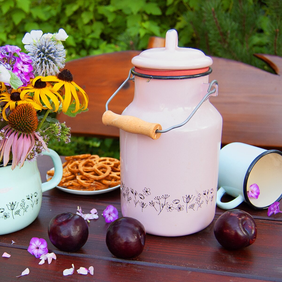 Ak si chodíte kupovať čerstvé mlieko, kúpte si kanvičku, vďaka ktorej váš nákup donesiete domov pohodlne a bez zbytočných strát. Táto smaltovaná kanvica s objemom 2 l vynikne vďaka svojej pastelovo ružovej farbe a jemnému dekoru rozkvitnutej lúky. Navyše má ladiacu pokrievku a praktické drevené ucho.
