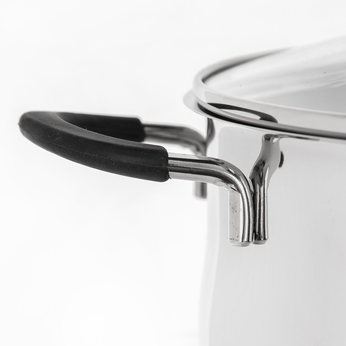 Okrem kvalitného nerezového povrchu, ktorý umožňuje zachovať čo najviac nutričných látok a prirodzenej chuti, sú jeho veľkou prednosťou nekĺzavé silikónové úchytky na hrnci aj pokrievke. Silikón znižuje stupeň rozpálenia rukoväťe pri varení a vďaka tomu, že nie sú duté, v nich ani pri umývaní v umývačke nezostáva voda.