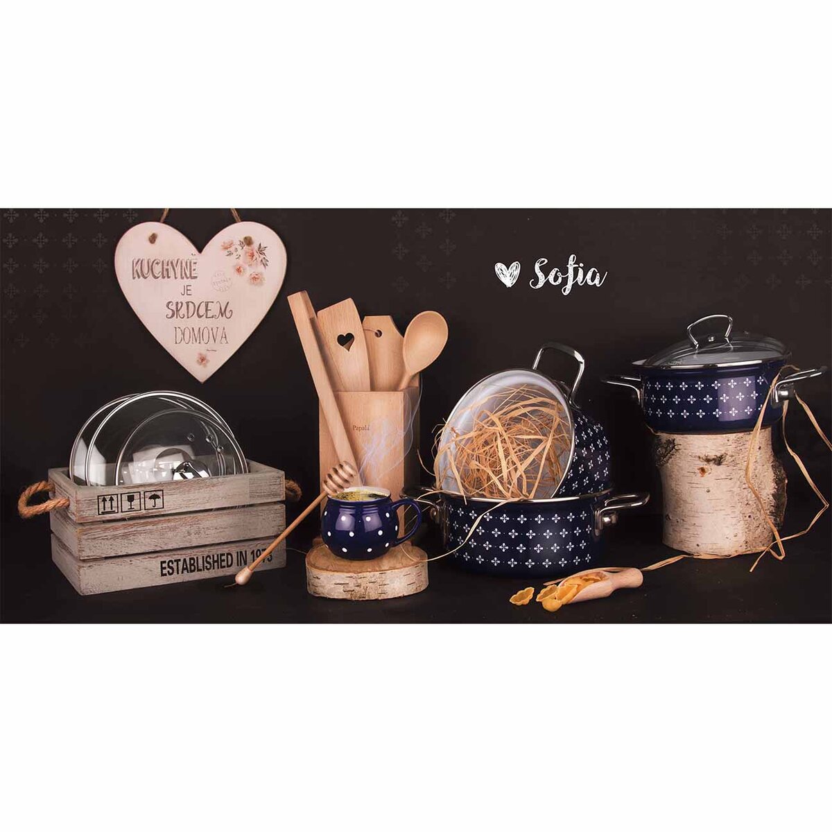 - Materiál: smaltovaný plech