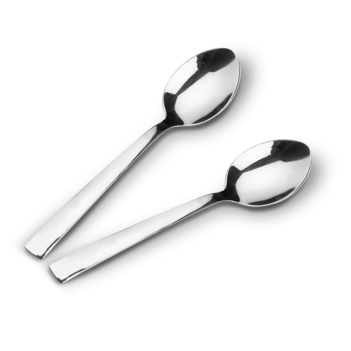 Lesklé nerezové lyžičky v jednoduchom, minimalistickom dizajne s hranatou spodnou časťou.