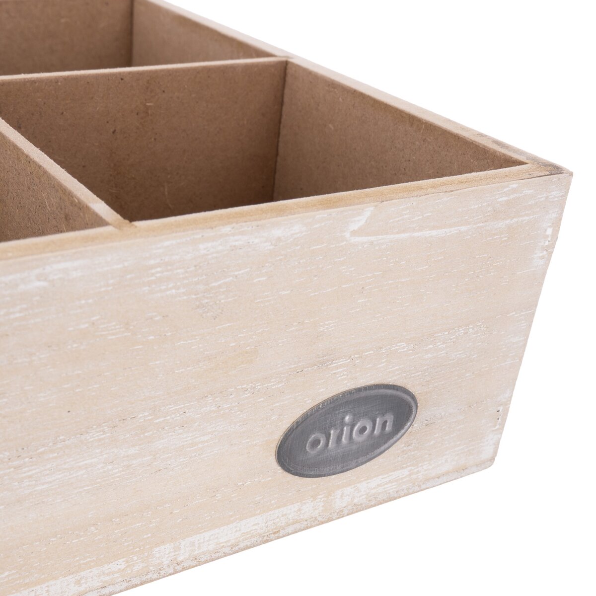 Vašim hosťom, kolegom v práci alebo klientom tak môžete štýlovo ponúknuť čaj, ktorý majú radi. Prírodne sfarbená kazeta s jemnou bielou patinou z MDF dosiek má veľkosť 24x16x7 cm a veko opatrené skleneným priehľadom s nápisom ČAS NA ČAJ. Ten vznikol v dielni našich Orion dizajnérov. Pohodlné otváranie a zatváranie zaistí kovové pánty.