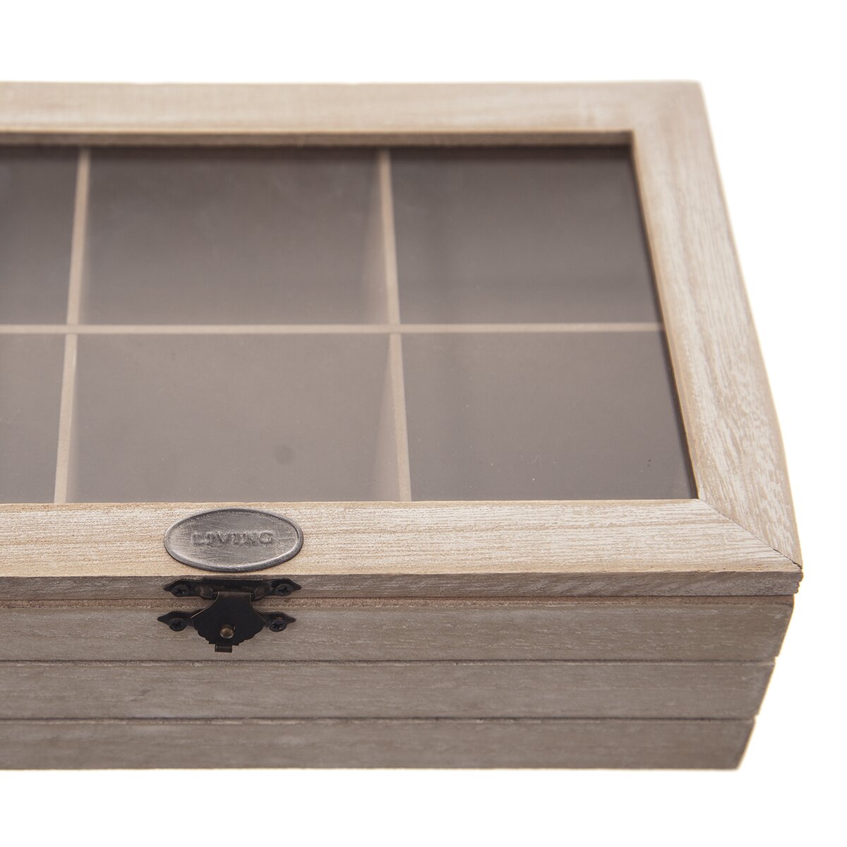 Kód produktu 127160Drevená kazeta na čajové vrecúška je rozdelená do 6 sekcií, s preskleným vekom a jednoduchým uzatváraním.