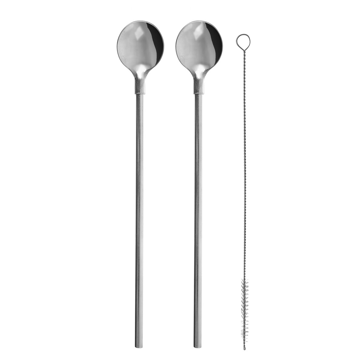 Kód produktu 144602Sada 2 kusov koktailových nerezových lyžičiek s dlhou rukoväťou, ktorá je zároveň slamkou, doplnených jemnou kefkou pre efektívne čistenie.