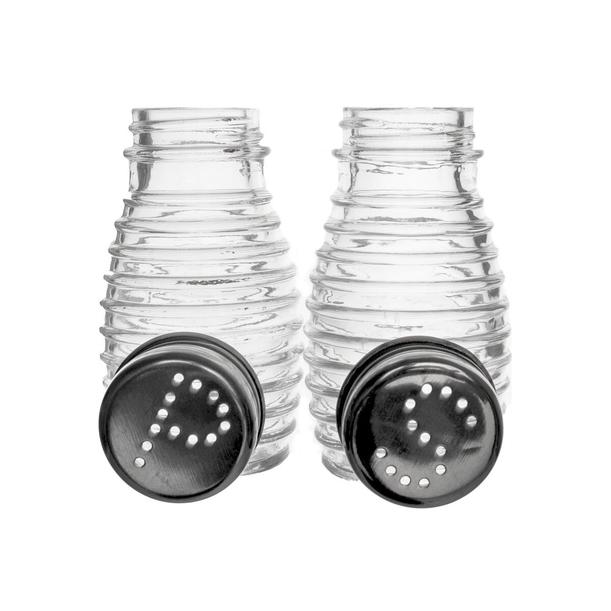 Praktické duo, vďaka ktorému budete mať soľničku a koreničku neustále po ruke. Sklenené nádoby sú zdobené výrazným vrúbkovaním.