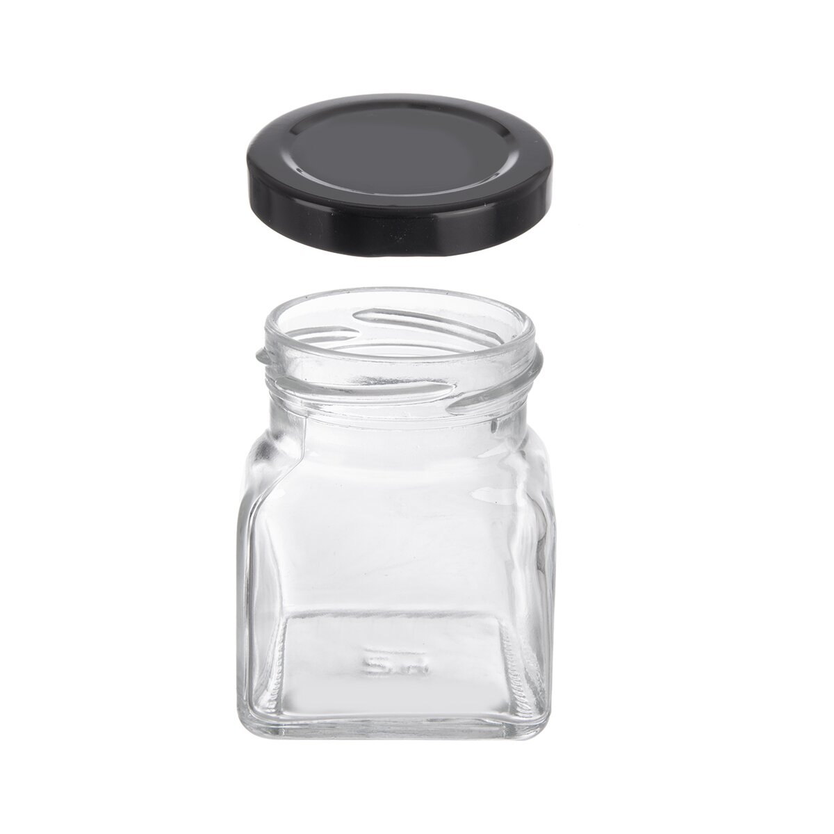 Kód produktu 155118Hranatá sklenená korenička s čiernym viečkom má objem 130 ml a hodí sa na uloženie korenia, byliniek a rôznych dochucovadiel.