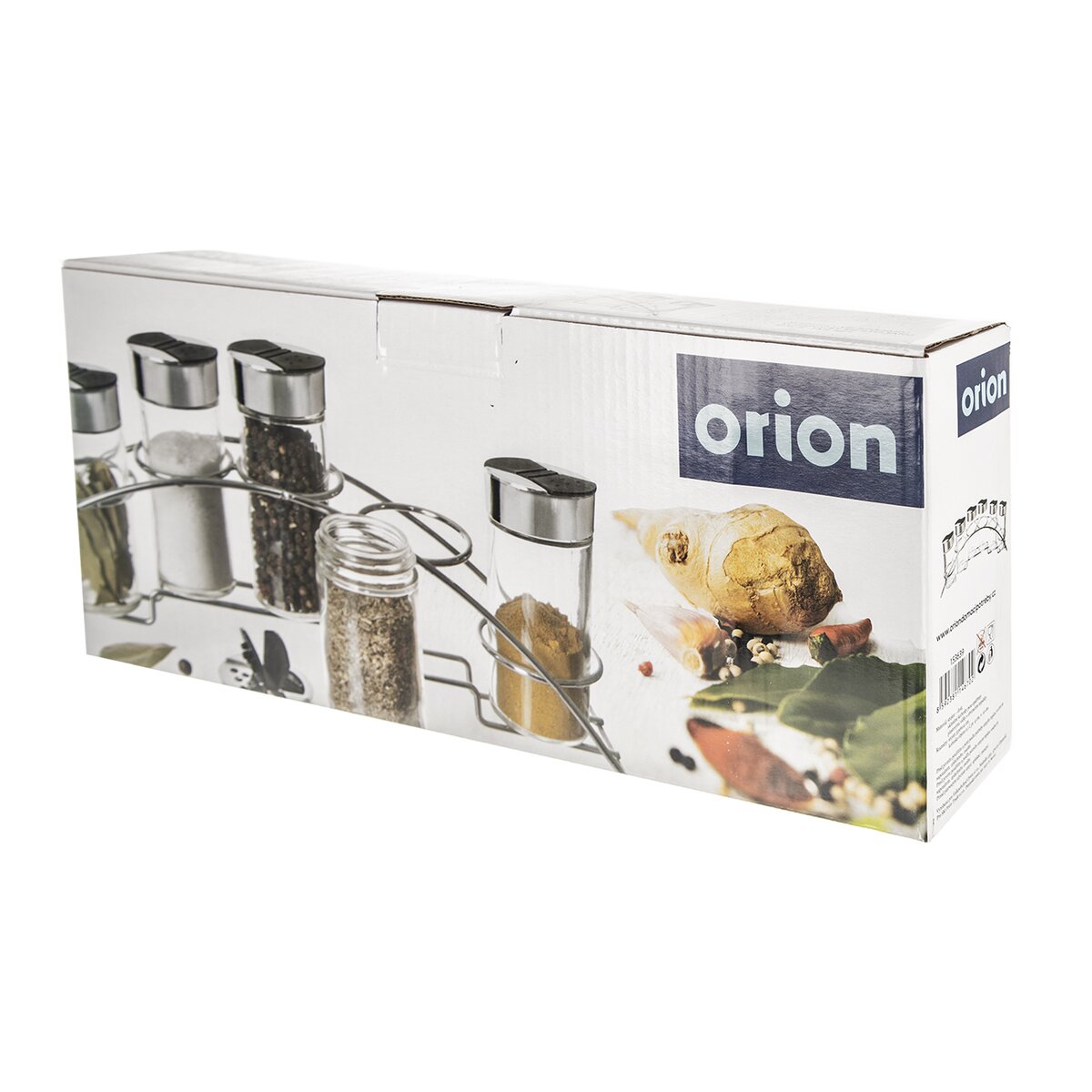 Kód produktu 153639Kovový stojan so 6 sklenenými koreničkami pre uloženie korenia, byliniek a dochucovadiel, opatrené viečkami s otvárateľnými sypatkami.