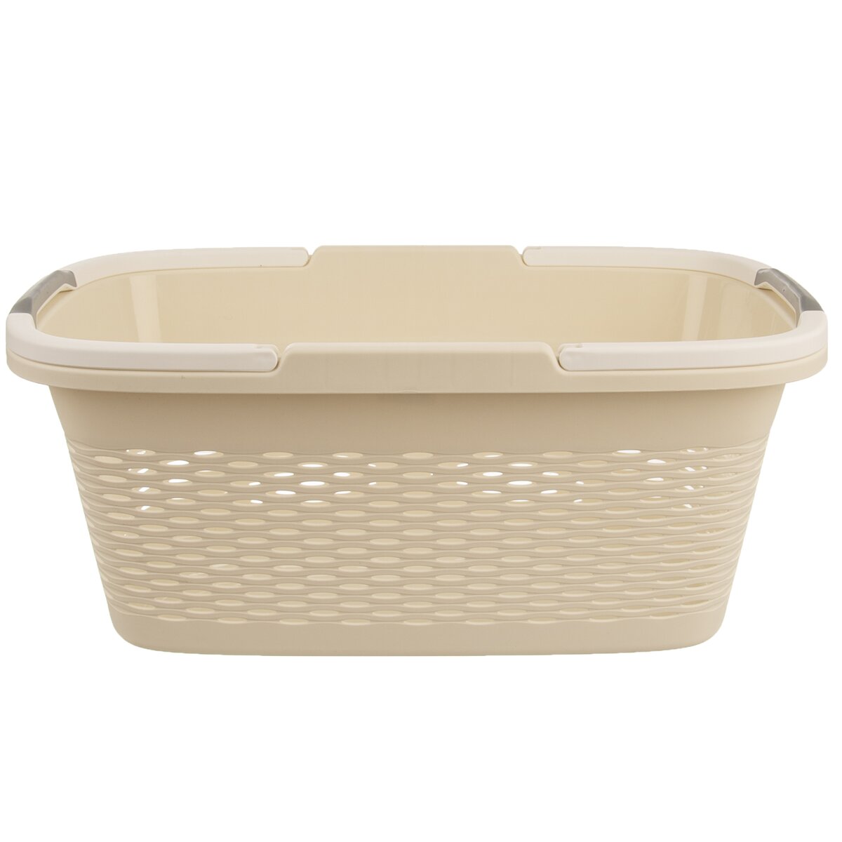 Kód produktu 730545Béžový plastový kôš LOOP s dvoma sklápacími držadlami a dierovaným povrchom, vo veľkosti 58x37,5x24 cm, je vhodný na prenášanie čistej vypranej bielizne a najrôznejších vecí v domácnosti.