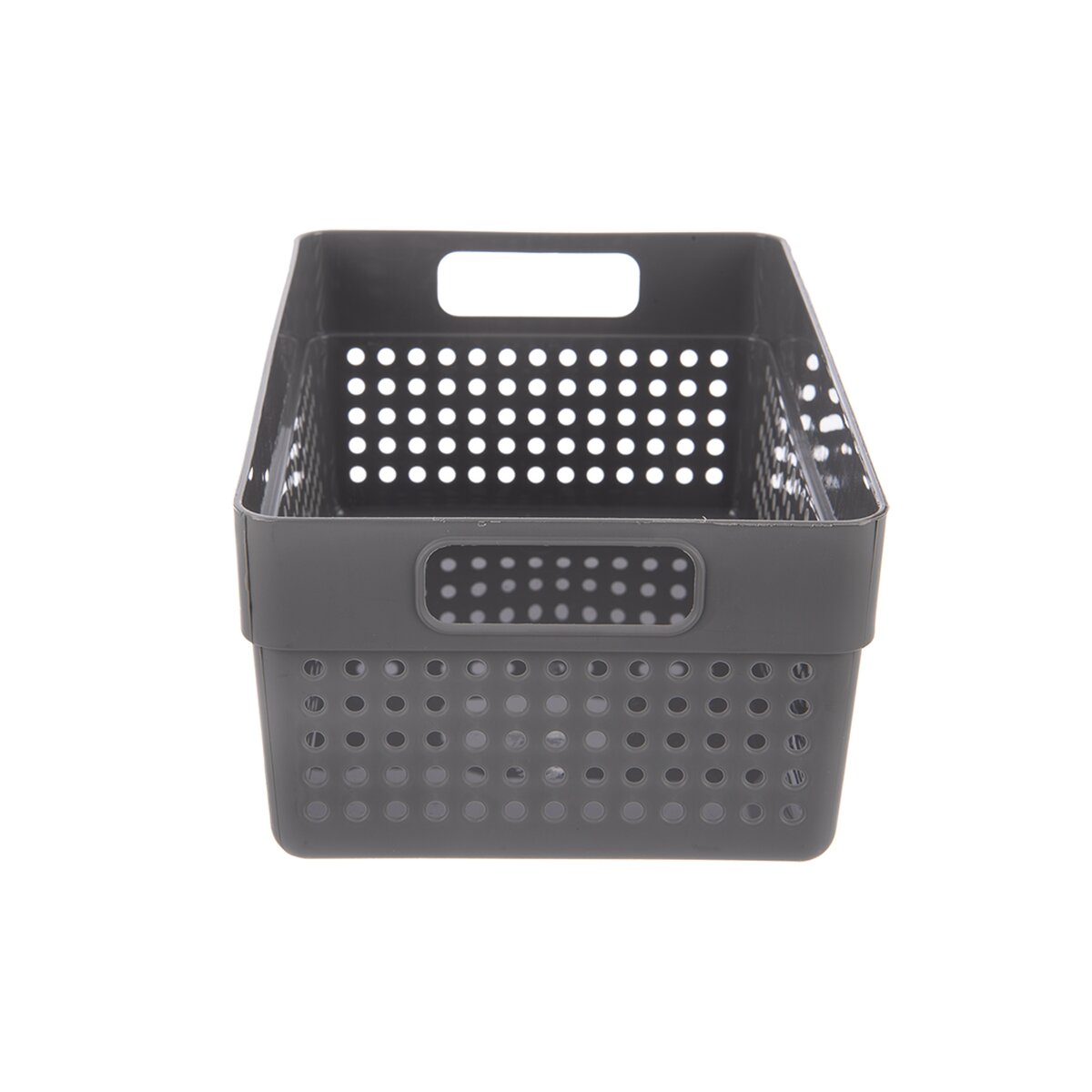 Kód produktu 731643Plastový košík v šedej farbe má veľkosť 23,5x15,5x10 cm a hodí sa na uloženie koreničiek, kancelárskych potrieb i drobnej kozmetiky.