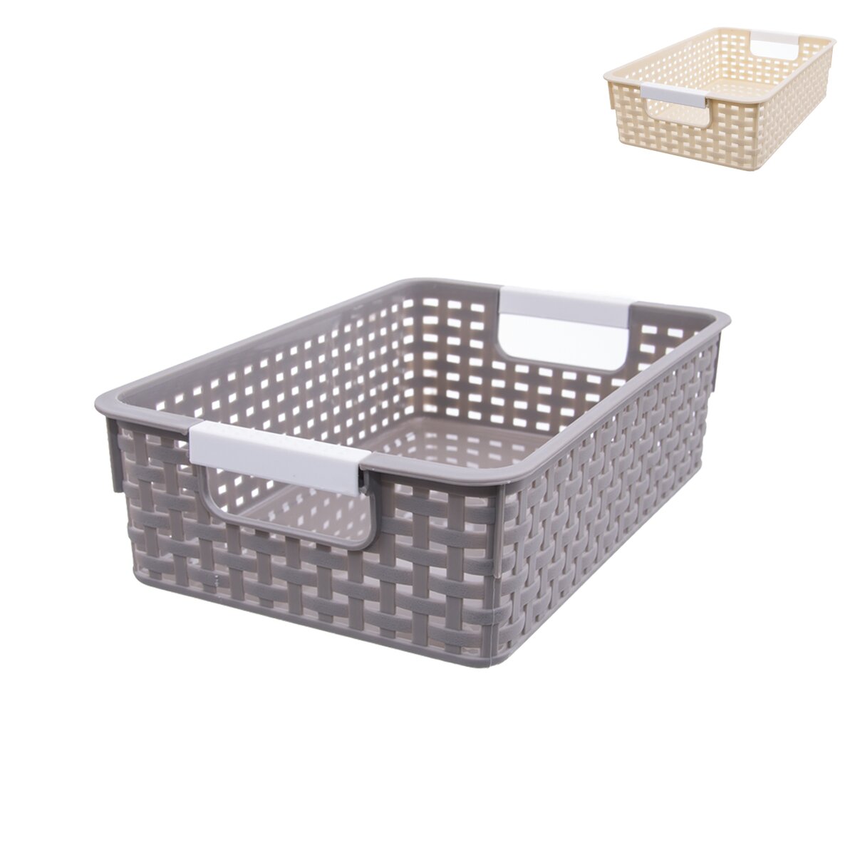 Košík s ušami na uloženie rôznych drobností kdekoľvek v domácnosti. Materiál: plast. Farebný assort. Rozmery: 34x24x8,5 cm.