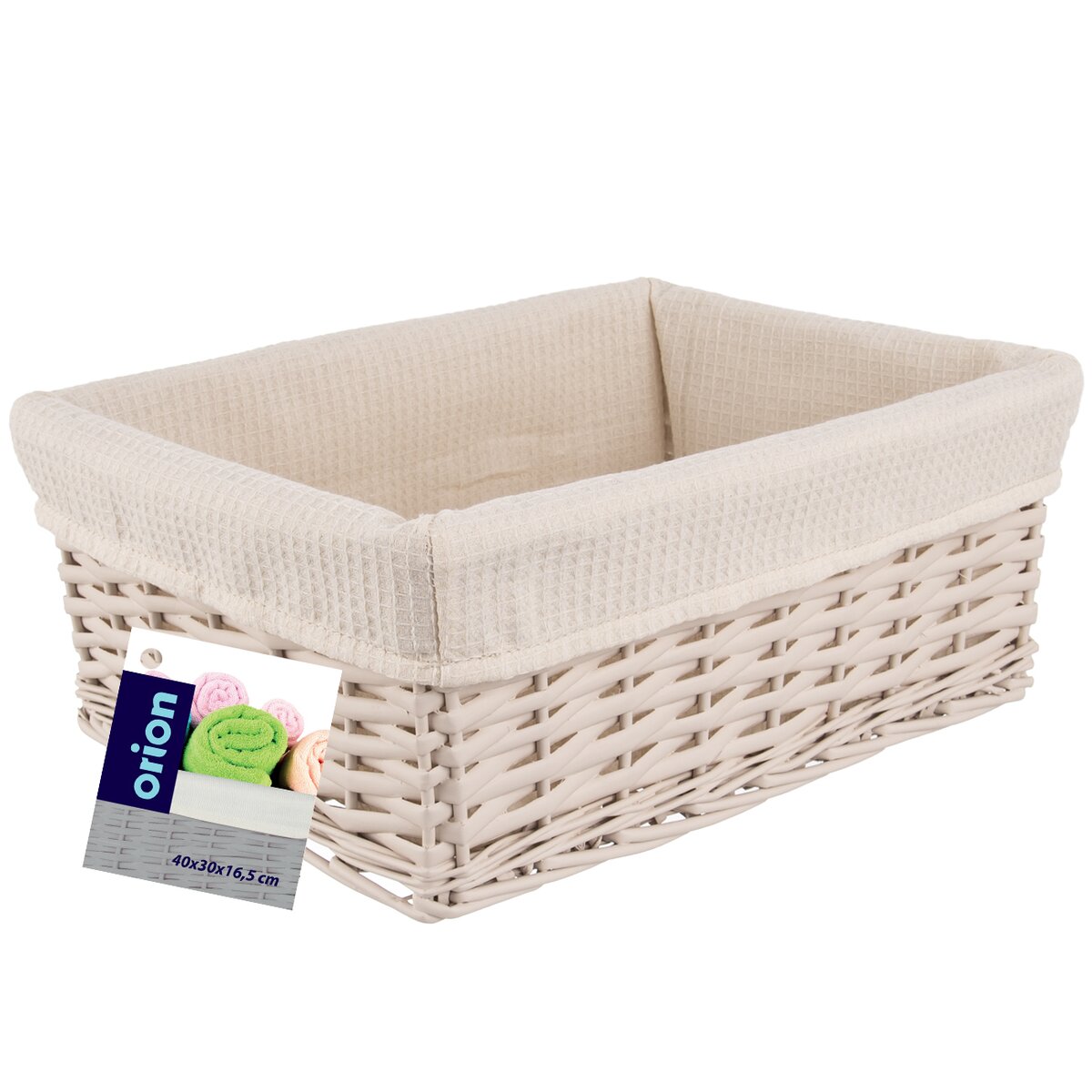 - Materiál: vrbové prútie, bavlna, polyester