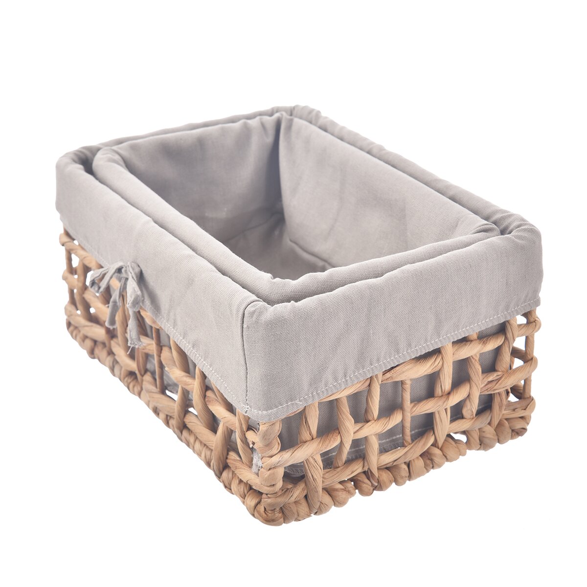 Hranatý košík s rozmerom 27x17x13 cm z vodného hyacintu je doplnený bavlnenou šedou vložkou. Vhodný na ukladanie a servírovanie pečiva aj na uloženie rôznych drobností nielen v domácnosti.
