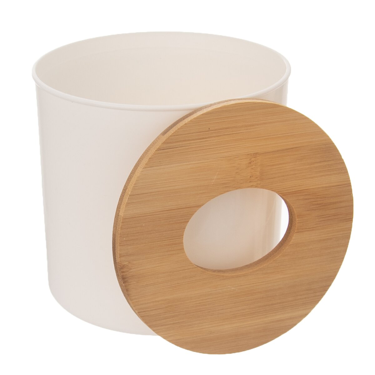 Kód produktu 731330Odpadkový kozmetický kôš je vyrobený z plastu a je možné ho uzavrieť bambusovým viečkom.