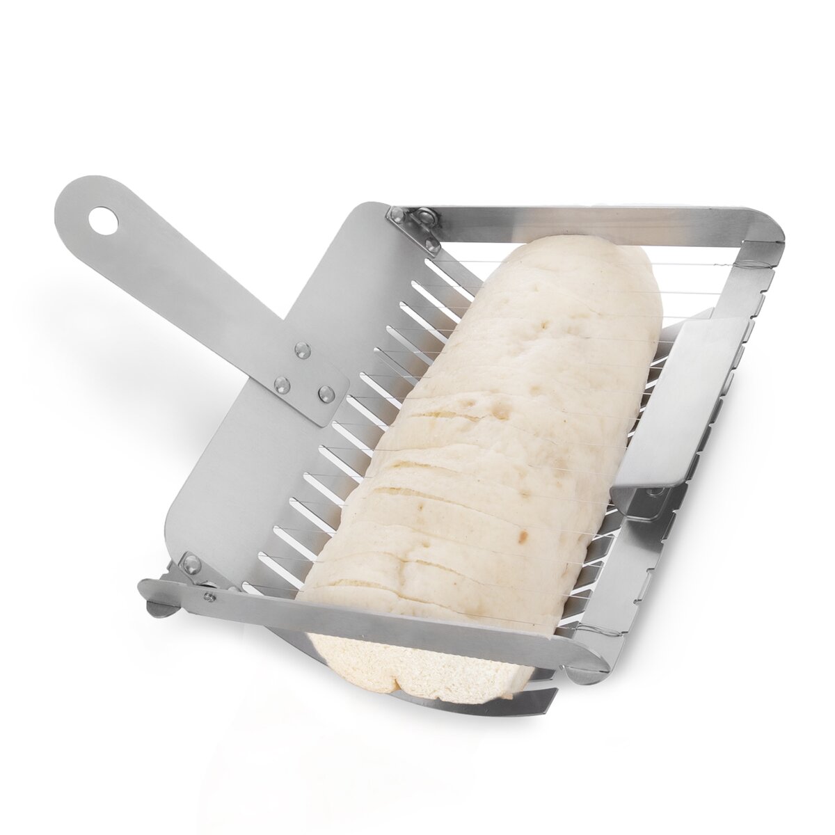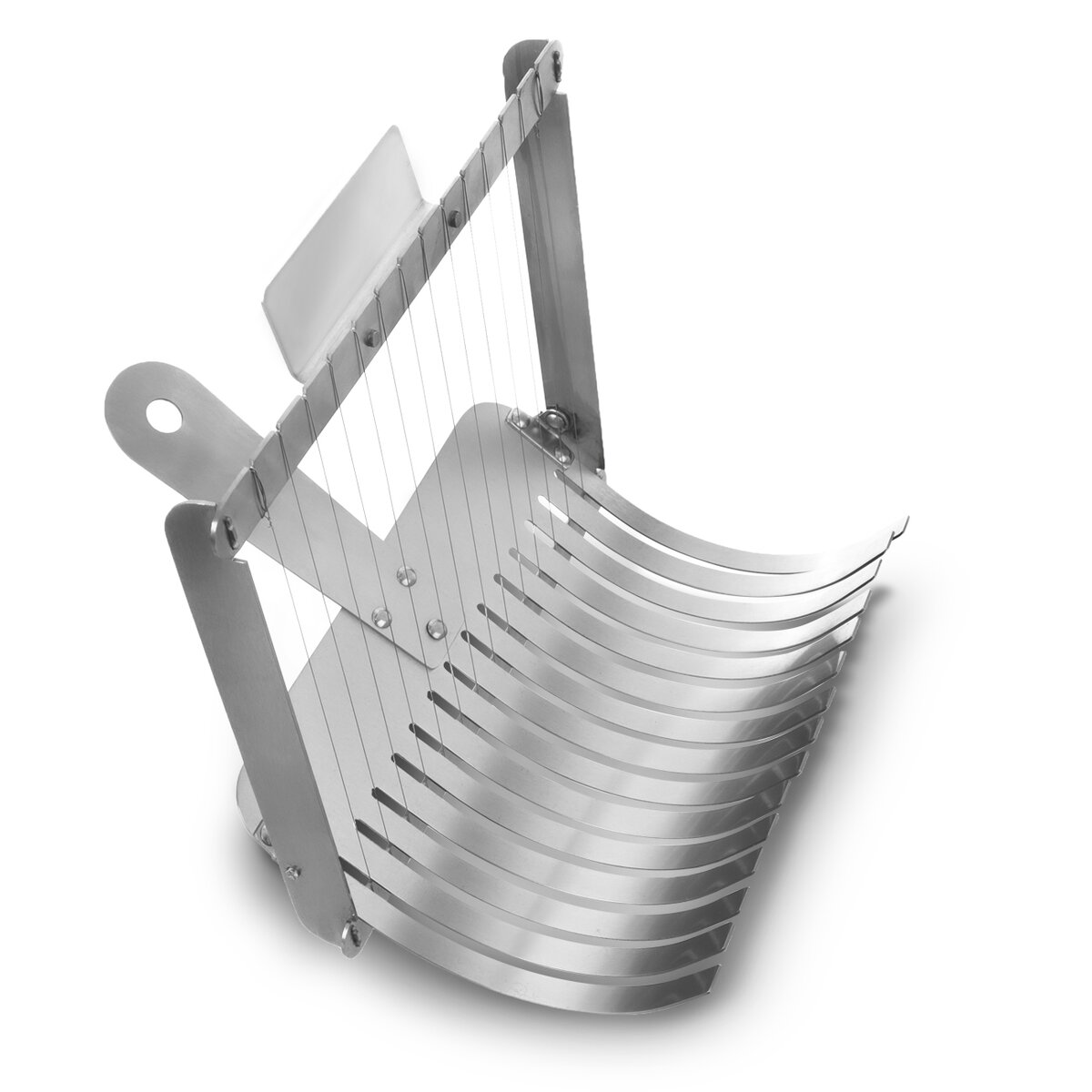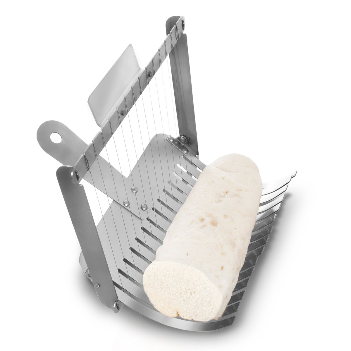 Kód produktu 130429Nerezový krájač na práve uvarené žemľové alebo zemiakové knedle nakrája vďaka systému napnutých strún až 15 rovnomerných plátkov. Možno umývať v umývačke riadu.