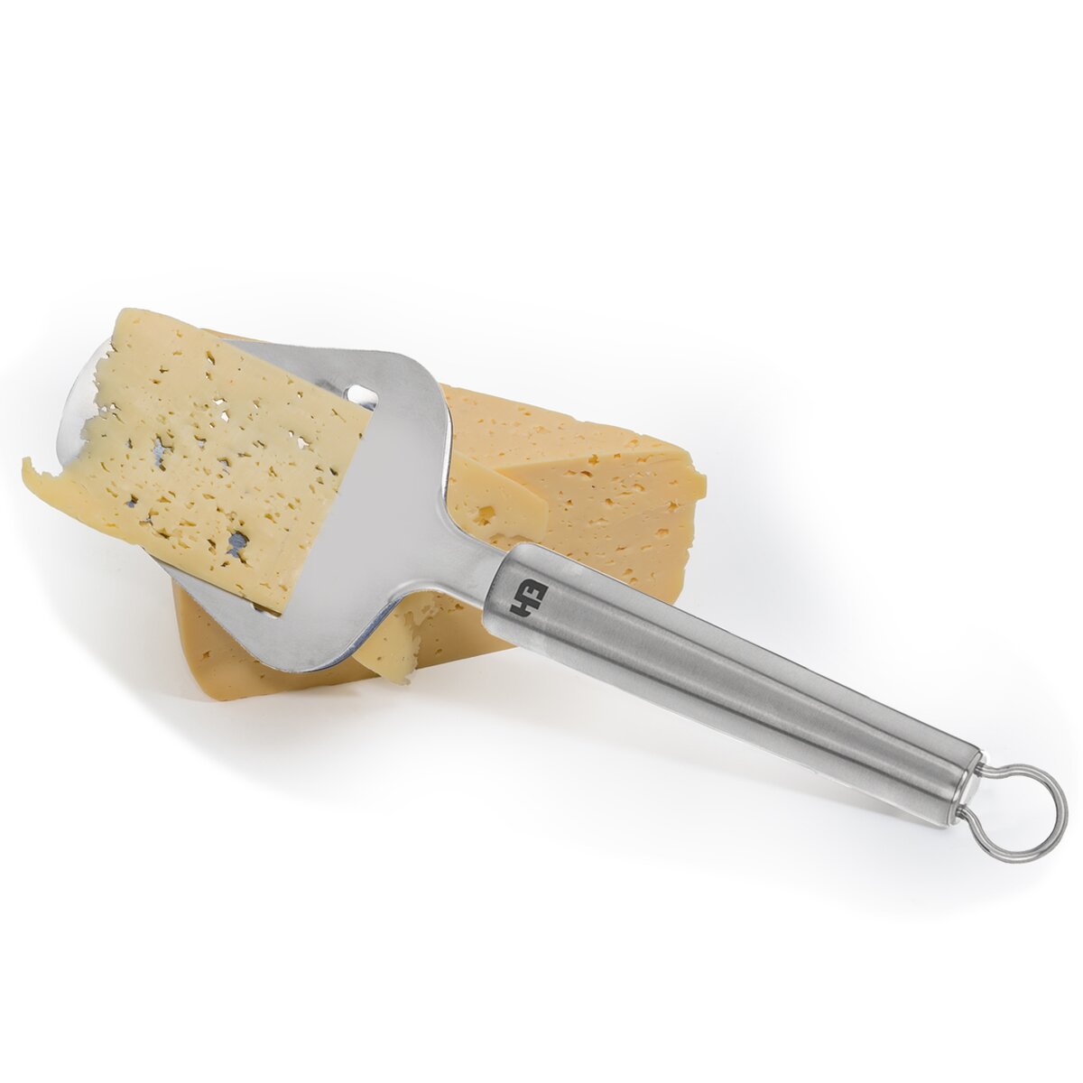 Kód produktu 144701Nerezový krájač na syr umožňujúci pravidelné plátkovanie tvrdých syrov. Má praktickú rukoväť a očko na zavesenie.
