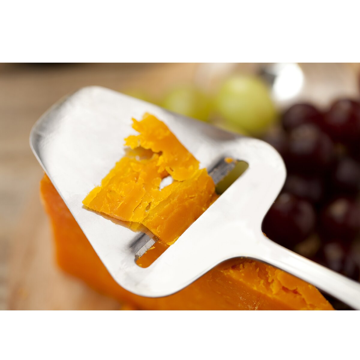 Ponúka veľmi pohodlný spôsob plátkovania syrov. Možnosť zavesenia. Možno ho umývať v umývačke riadu.
