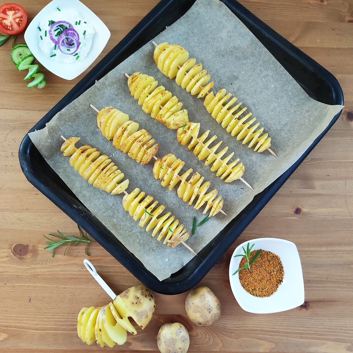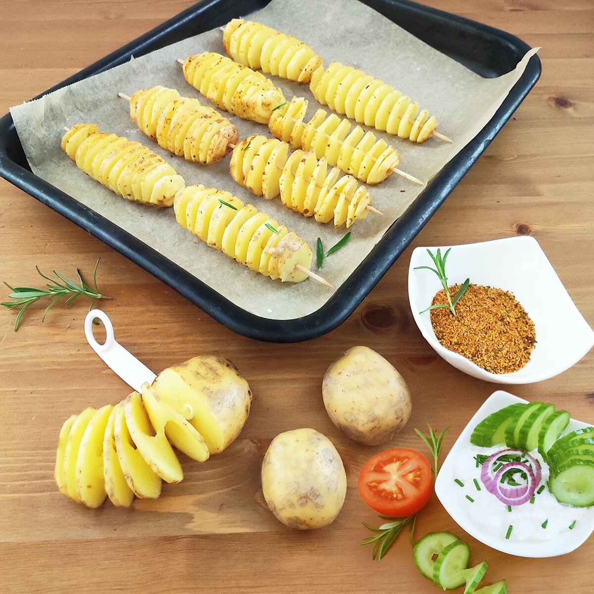 Viac informáciíDoma vyrobené špirálové vyprážané chipsy zo zemiakov budú hračka. Navyše vyjdú oveľa lacnejšie, než kupované na trhu či jarmoku. Malý krájač z plastu PP vytvorí počas chvíle dlhú špirálu z čerstvých zemiakov, uhorky, cukety či mrkvy. Zemiaky možno napichnúť na špajli alebo grilovaciu ihlu a dať smažiť alebo piecť na papieri na pečenie do rúry. Čerstvá zelenina zase ozdobí šaláty alebo chlebíčky.