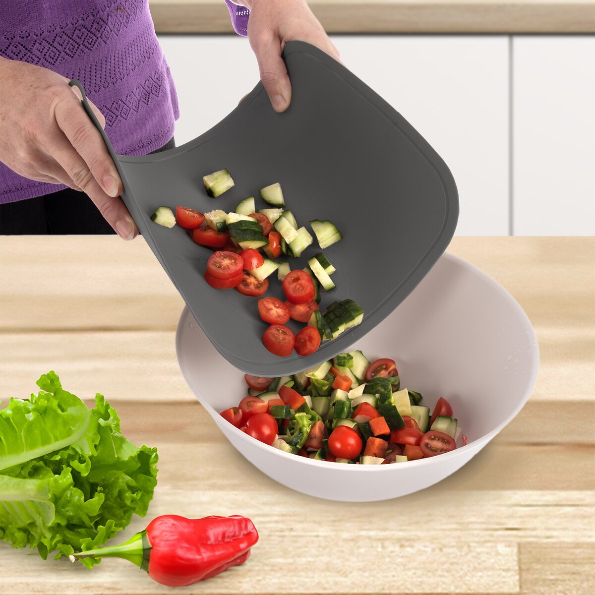 Navyše je tenká, takže pomôže aj pri zosypávaní nakrájaných potravín do misy, hrnca alebo na panvicu. To oceníte pri sypaní krájanej zeleniny do šalátovej misy, domácich rezancov do polievky alebo byliniek.