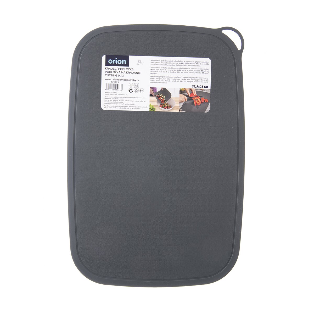 Kód produktu 121423Plastová šedá krájacia podložka rozmeru 33,5x23 cm je vhodná na krájanie najrôznejších potravín, ich zosypávanie do misy či hrnca a opatrená šikovnou drážkou po obvode.