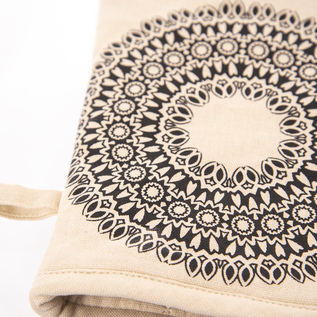 Aj kuchynská chňapka môže byť štýlová. To potvrdzuje táto bavlnená rukavica so vzorom mandaly, populárnym symbolom predstavujúci vesmír, jednotu a harmóniu.