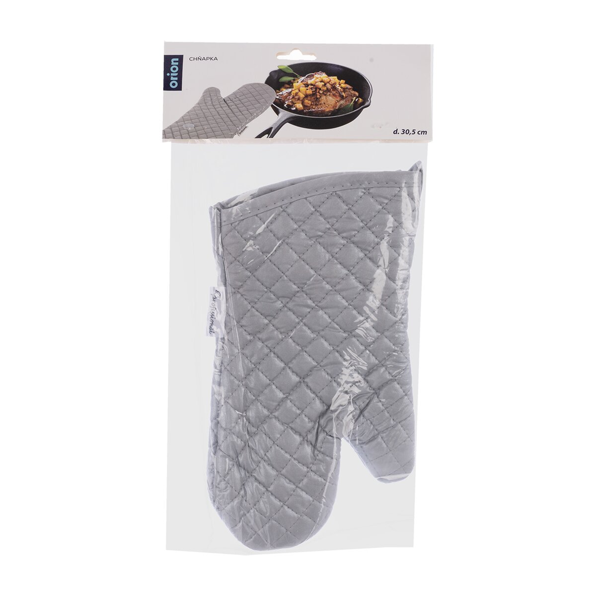 Kód produktu 153930Kuchynská chňapka je ochranná rukavica určená pre bezpečné použitie v domácnosti, najmä pri varení, pečení, manipulácii s riadom v rúre, na grile alebo na platni. Chráni ruku pred tepelnými rizikami spojenými s vybratím či pridržaním horúcich predmetov a riadu, a to vďaka odolnosti proti kontaktnému teplu do 250 °C (maximálne po dobu 15 sekúnd). Chňapka patrí do triedy ochrany 2 a nie je vhodná na kontakt s priamym plameňom. V prípade potreby ju možno očistiť iba navlhčenou hubkou alebo handričkou. Nesmie sa prať, chemicky čistiť, bieliť, žehliť ani sušiť v sušičke. Vlhkú chňapku nenechávajte schnúť priamo na tepelnom zdroji. Pre ľahké skladovanie je možné ju zavesiť za pútko. Materiál: vrchný materiál bavlna, nástrek polyetylakrylát, výplň: bavlna, polyester, viskóza, podšívka: 100% polyester. Rozmery: 30,5x18 cm.