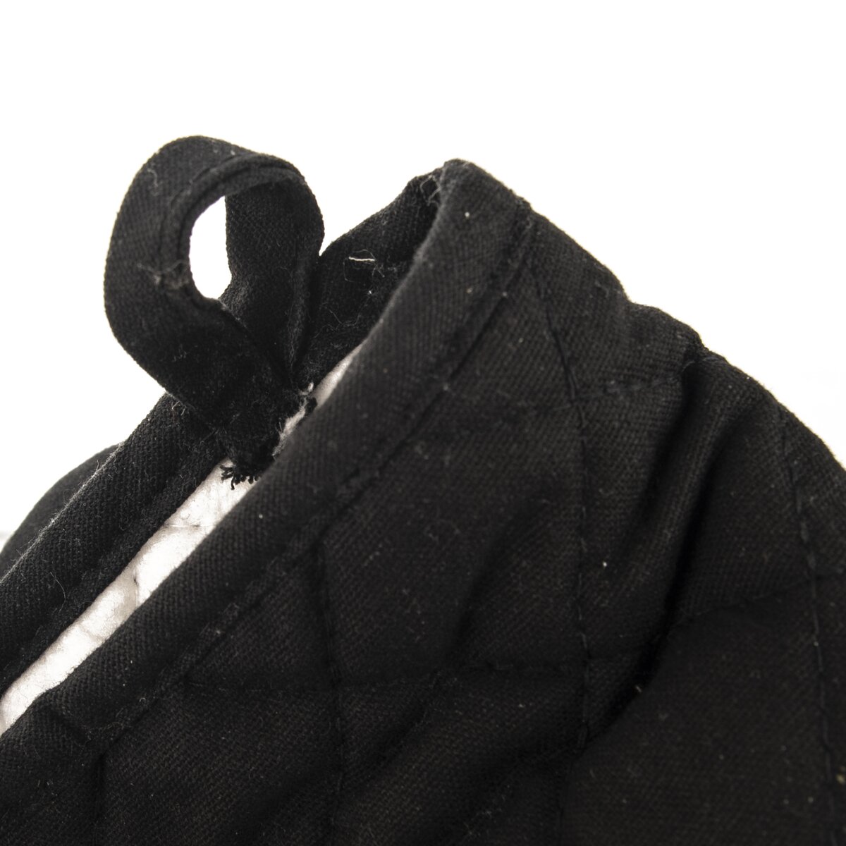 Viac informáciíČierna kuchynská chňapka zo 100% bavlny, s vnútornou polyesterovou vrstvou, uľahčuje manipuláciu s horúcim riadom na sporáku alebo pri vyťahovaní pekáčov či plechov z rúry. Možno ju použiť aj pri letnom grilovaní.
