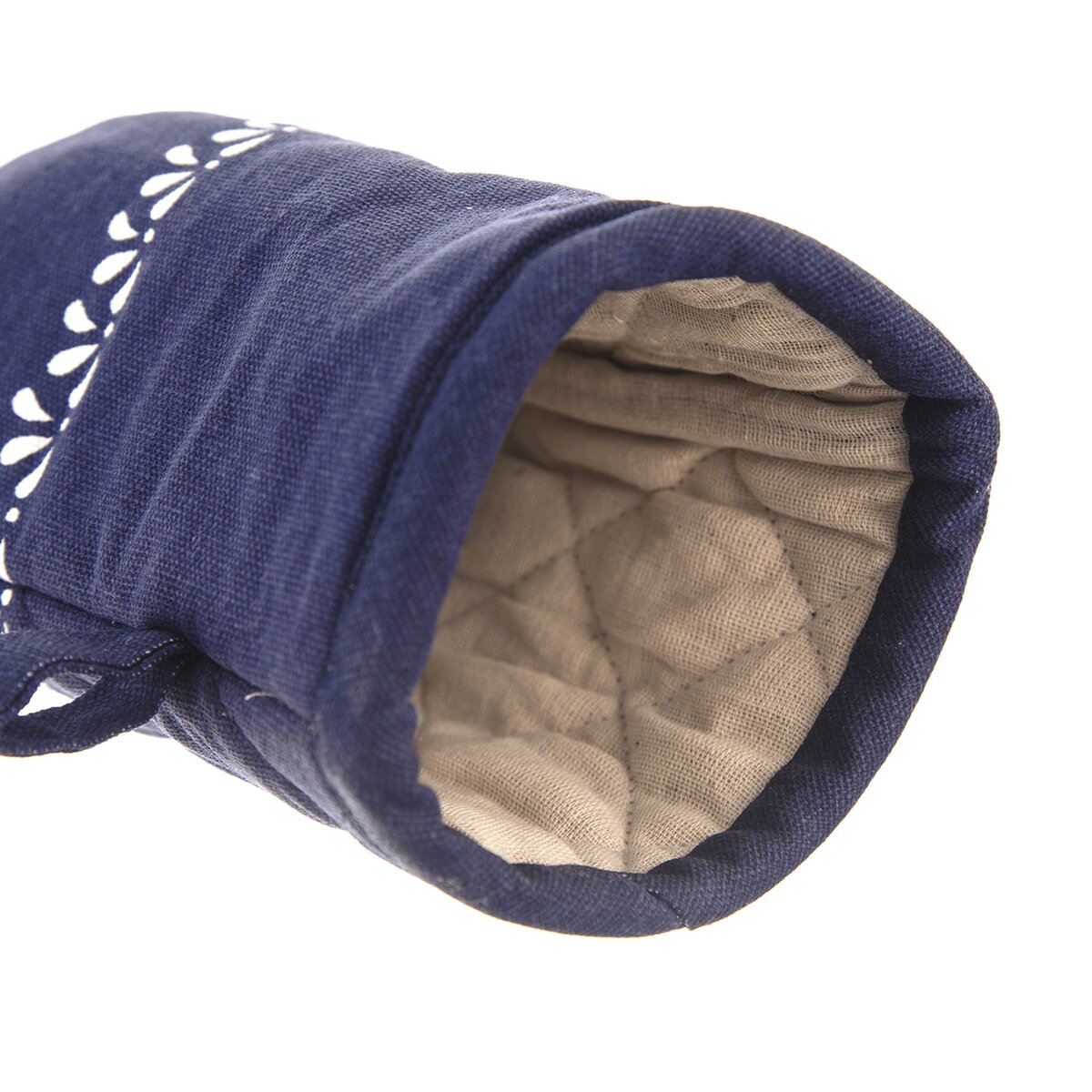 Kód produktu 152194Bavlnená kuchynská chňapka, inšpirovaná technikou modrotlače, je vybavená pútkom a magnetom na zavesenie.